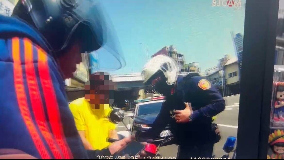 竹市警察局埔頂派出所警員黃騰毅日前在前往警局擔任常訓助教時,行經東門街發現一名男子騎著故障機車,另一名男子則用腳猛踢車牌,行為異常。