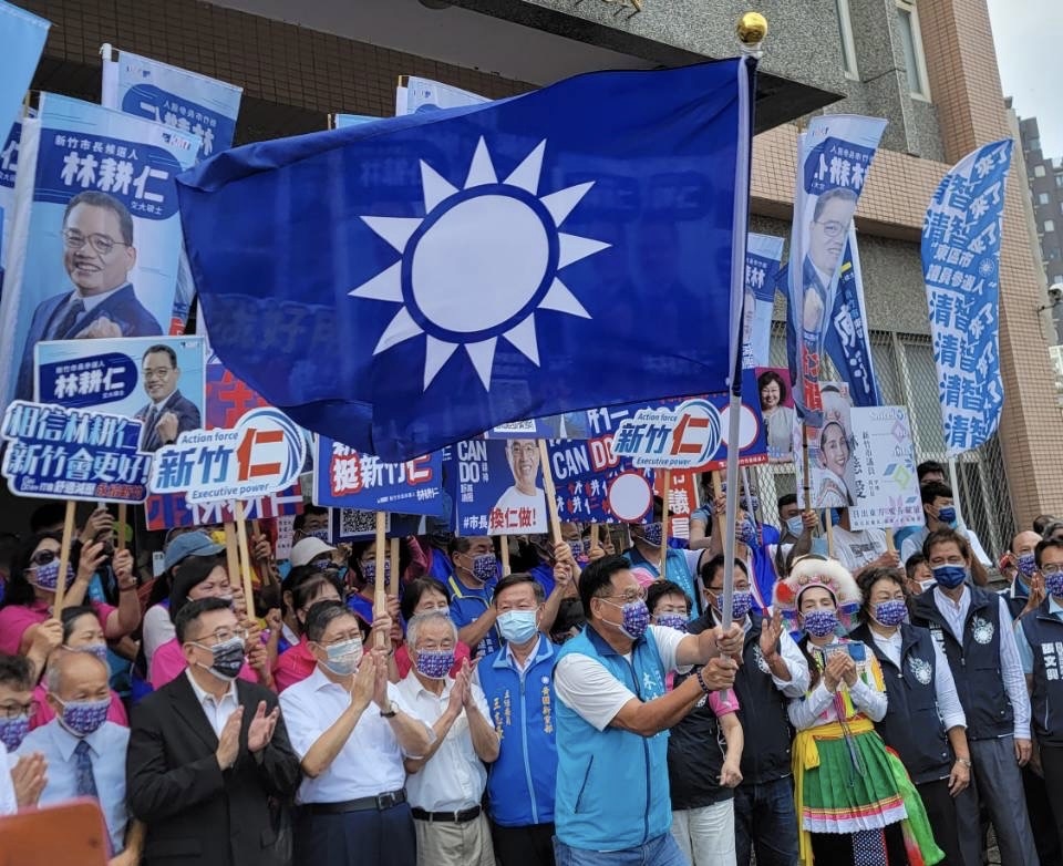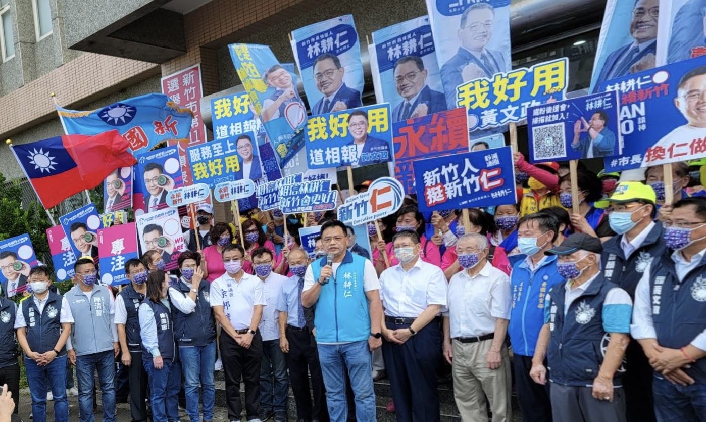 新竹市議員林耕仁今天上午在新竹縣長楊文科、竹市議長許修睿、前新竹市長林政則、童勝男、立委鄭正鈐及國民黨籍議員陪同下,完成登記參選年底新竹市長選舉。