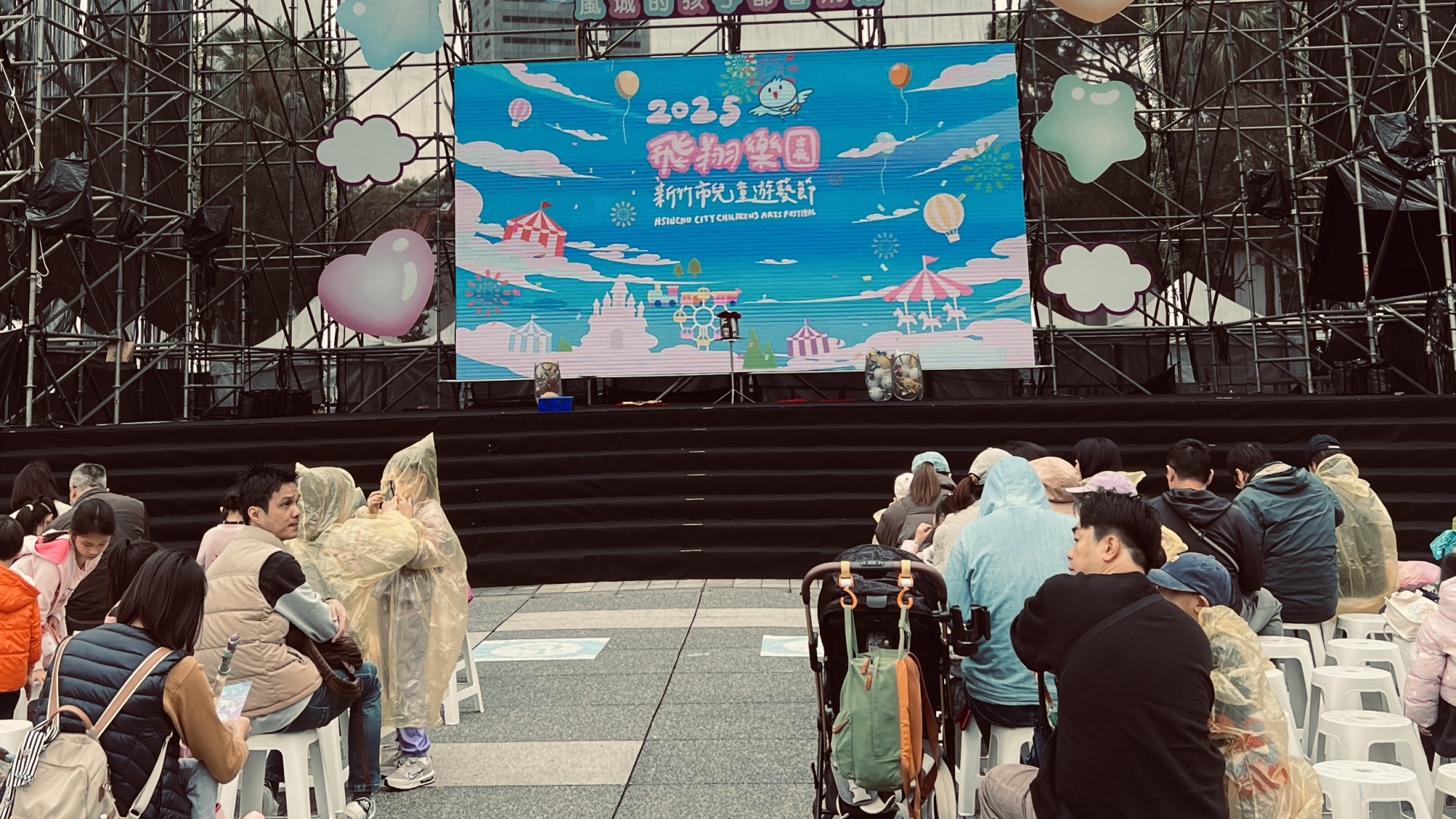 新竹市兒童遊藝節「飛翔樂園」在新竹公園熱鬧表演,結合了主題表演、藝術體驗、科技互動、拍照裝置、彩虹市集及闖關遊戲等多元內容,吸引大人兒童親子排排坐,快樂觀賞。