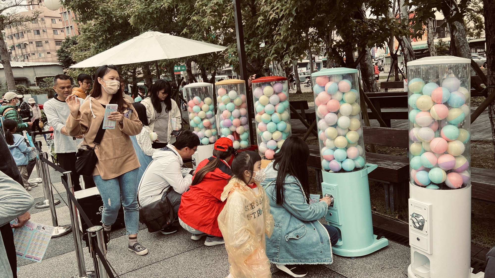 現場設有扭蛋機,是小朋友的最愛,扭蛋機內圓球造型滾出的希望,吸引小朋友好奇目光,出現大排長龍人潮。數十個文創和美食攤位,提供各種美味食物和創意商品,增添熱鬧氣氛。