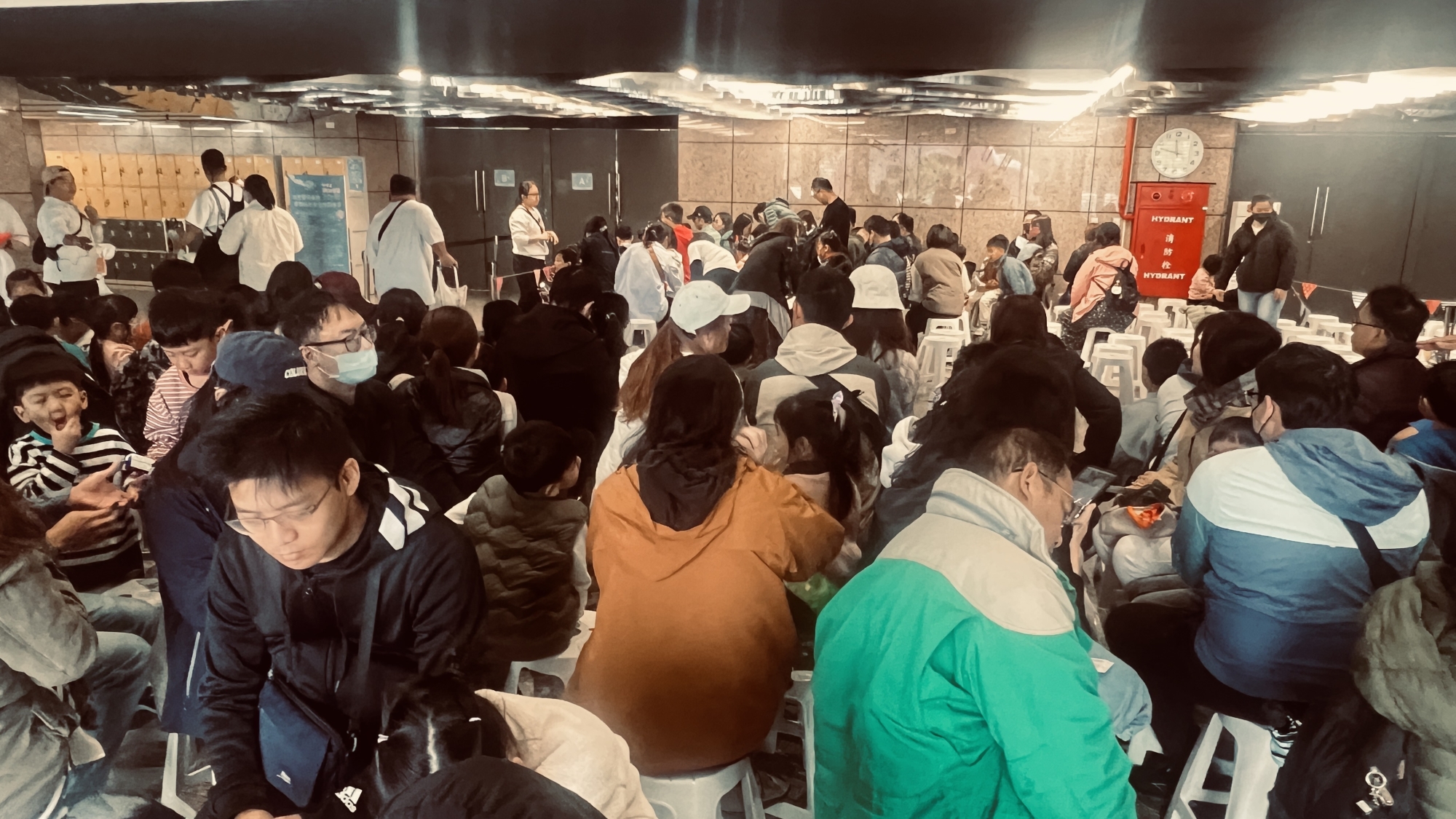 連續兩天陰雨,冷卻人潮熱度,今日下午放晴,人潮不斷湧入,為兒童遊藝節尾聲拉高了分貝。