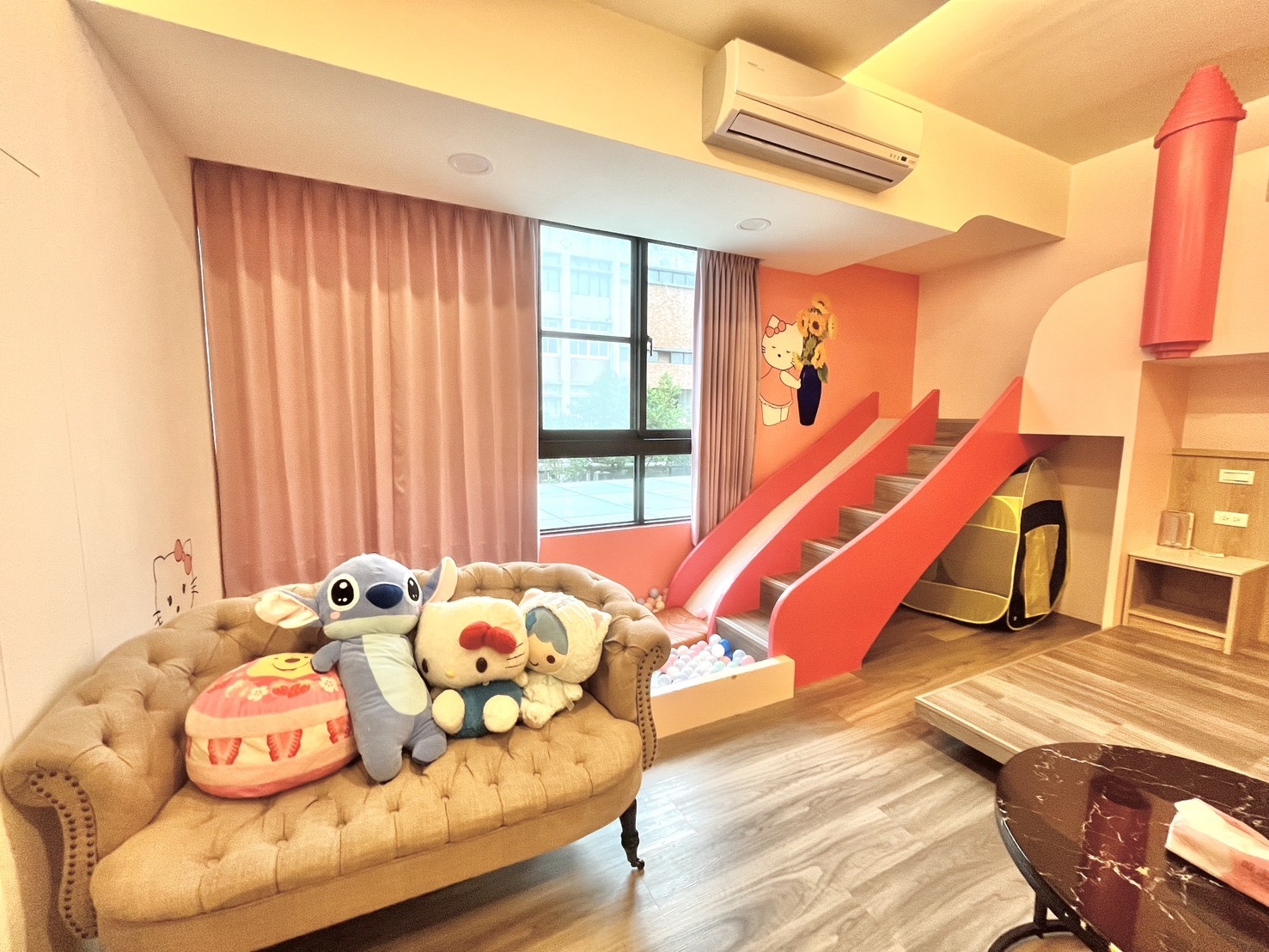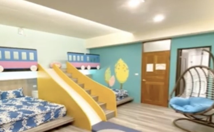 全家多次光顧的賴玉璇說,我很喜歡住這裡的房間,小孩進到房間後,馬上一直哇哇哇叫,玩溜滑梯跟球池都很開心,而且溜滑梯溜下來後,牆壁及地板都有貼軟墊,很貼心。