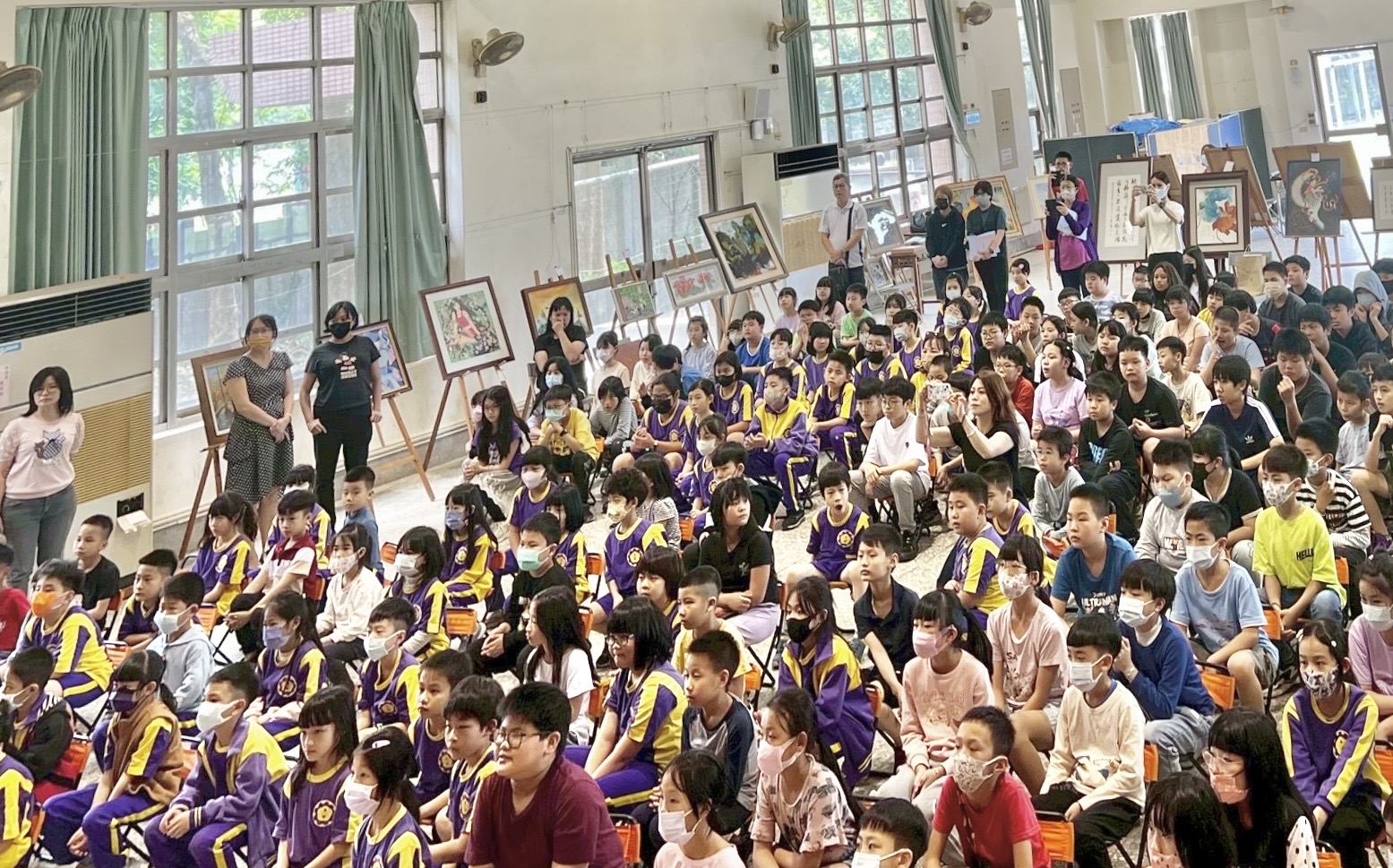 由竹市湖畔畫會理事長彭碧鈴領軍,熱忱投入此文化藝術紮根行動,參與新竹縣書畫藝術學會理事長廖志崑籌劃數月精英盡出。參與此活動的王泳心老師說,謝謝二位理事長,能和小朋友互動分享一些藝術作品,其實自己也有意外驚喜收獲喔!尤其看到同學對其它優秀藝術家作品感興趣提問時,自己眼裏也有光。