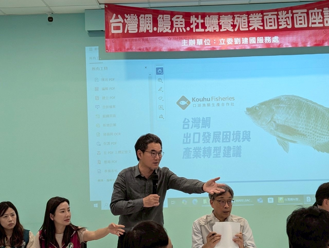 劉建國指出,不僅是吳郭魚,今天還有鰻魚業者、牡蠣業者都一起來聽取,陳部長以及農業部團隊要如何來協助養殖業者度過這一次危機,並化危機為轉機。