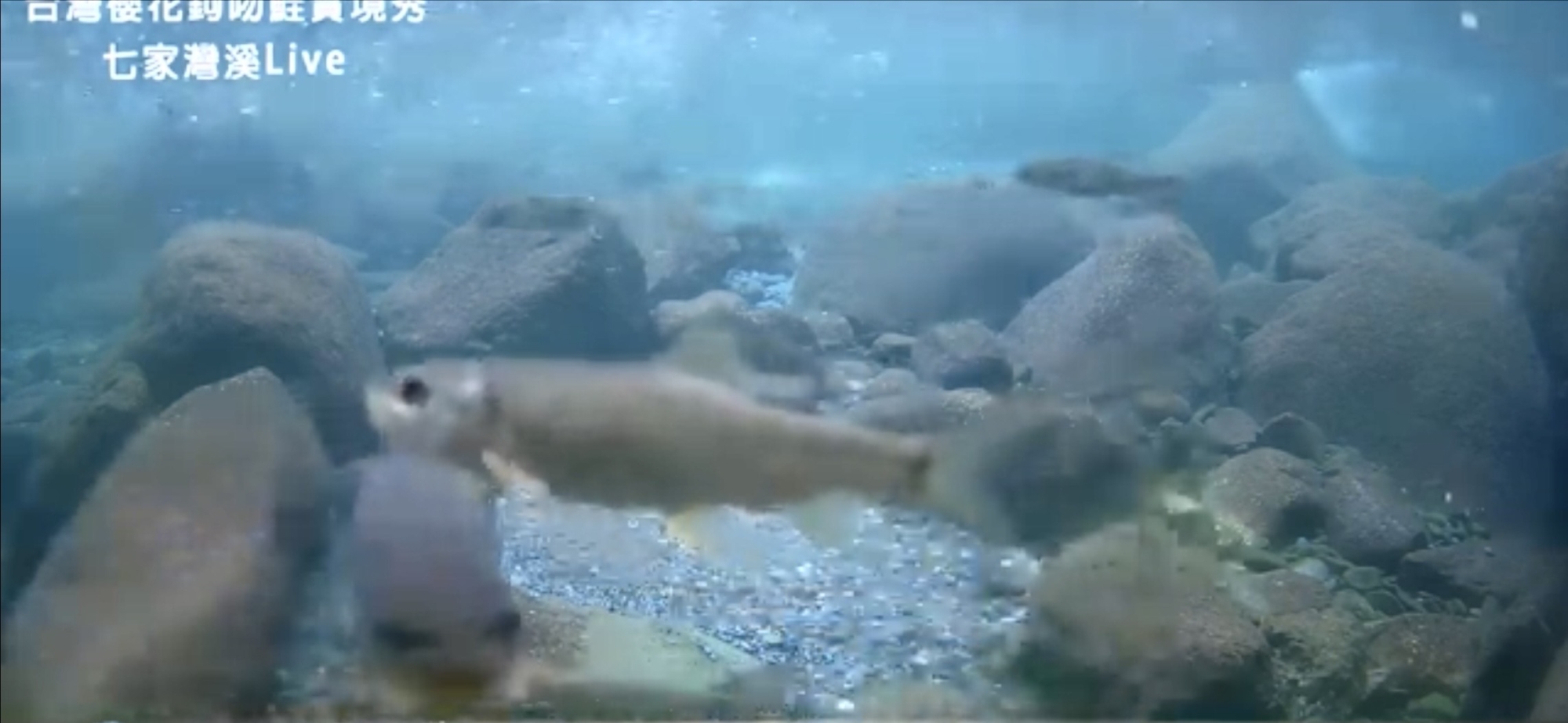 雪霸處指出:透過即時直播畫面,在臺灣櫻花鉤吻鮭的棲地中也常出現原生魚種「苦花」,引發部分民眾關心是否會與國寶魚產生棲地競爭,造成生態的影響。
