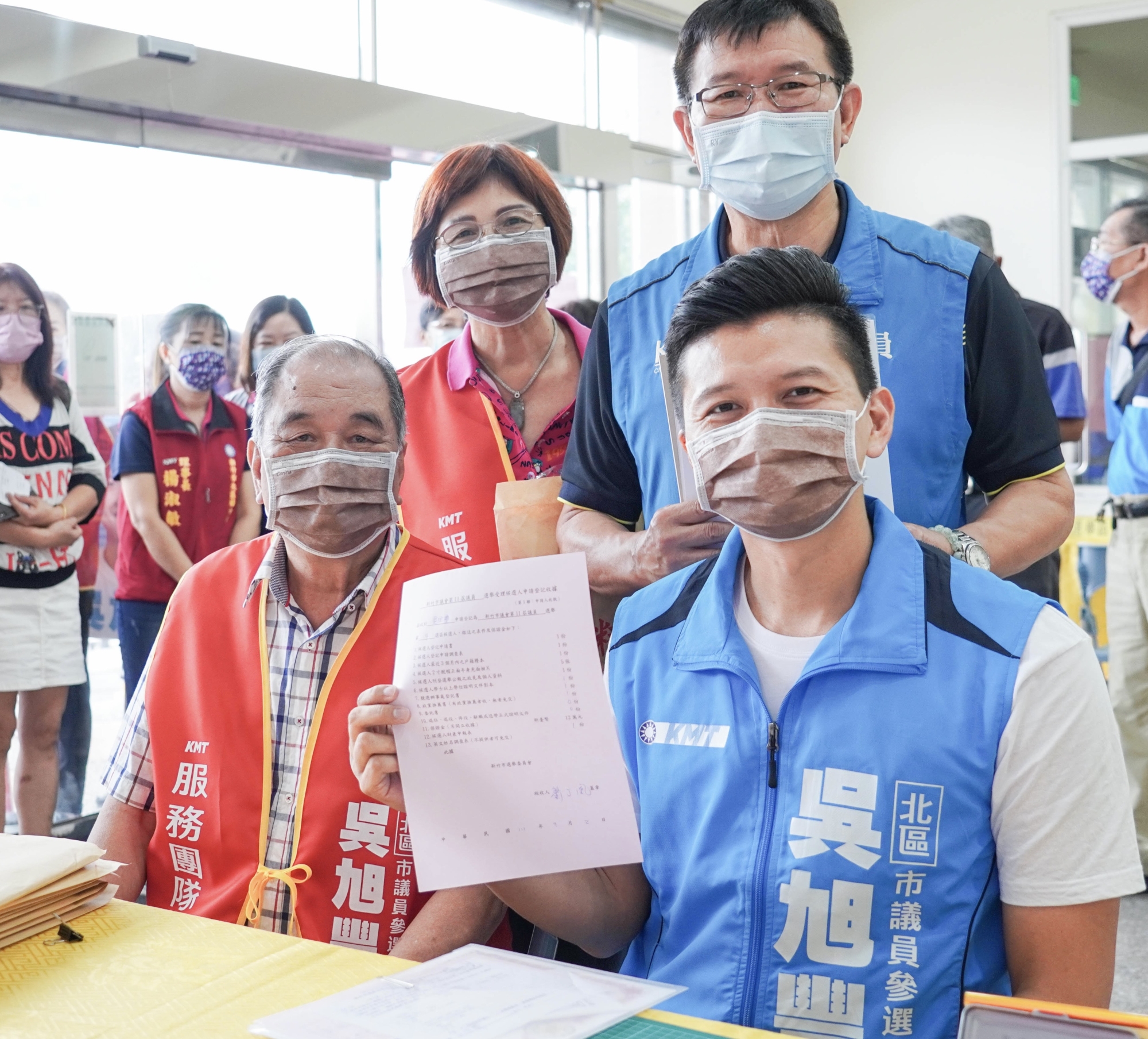 吳青山議員夫婦(後排)陪兒子吳旭豐(前右)登記參選市議員 何高祿攝