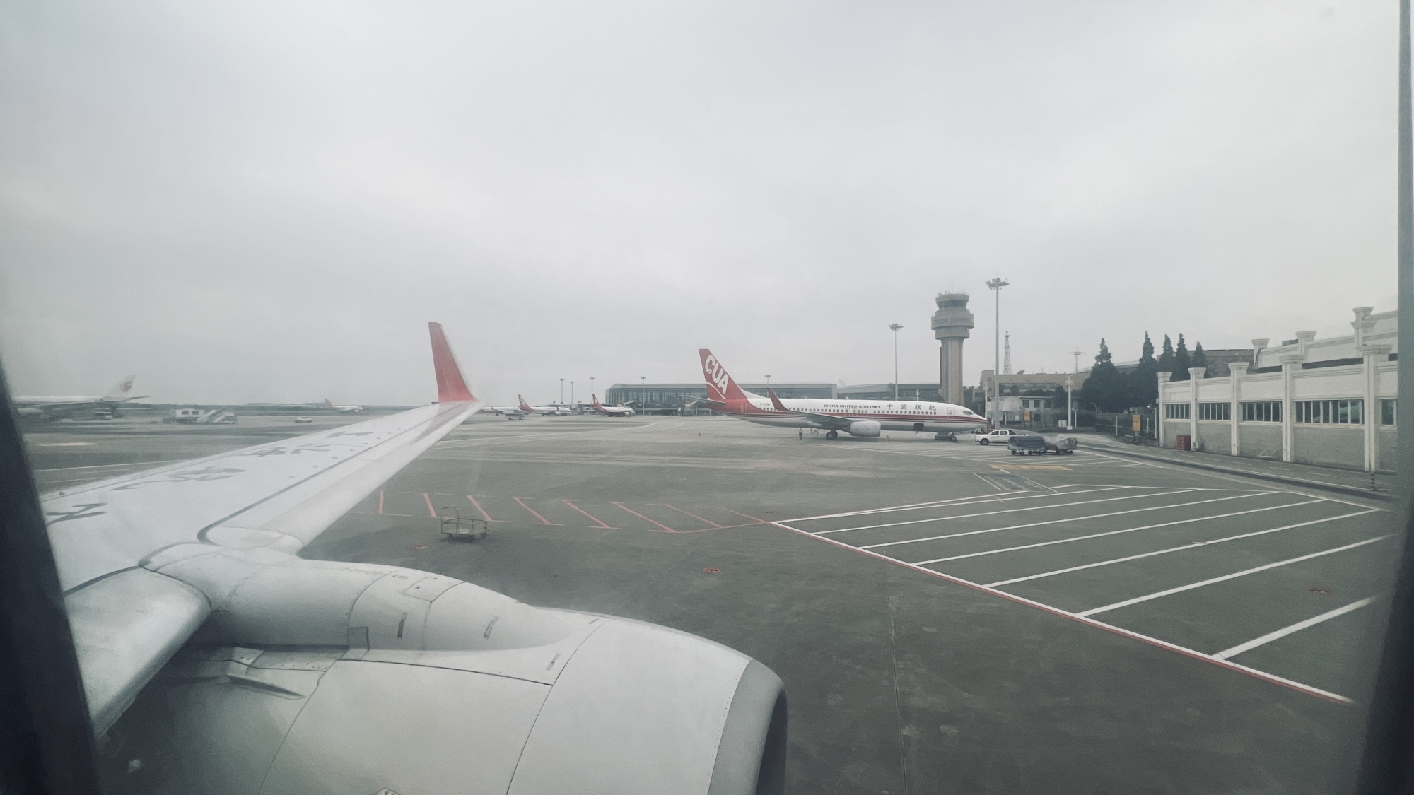 上海航空由虹橋機場上午八點15分,飛台北松山機場扛班MU8627,原本在上午10:15到達'因松山機場下雨無法下降,轉溫州機場避雨,等待通知再先起飛。