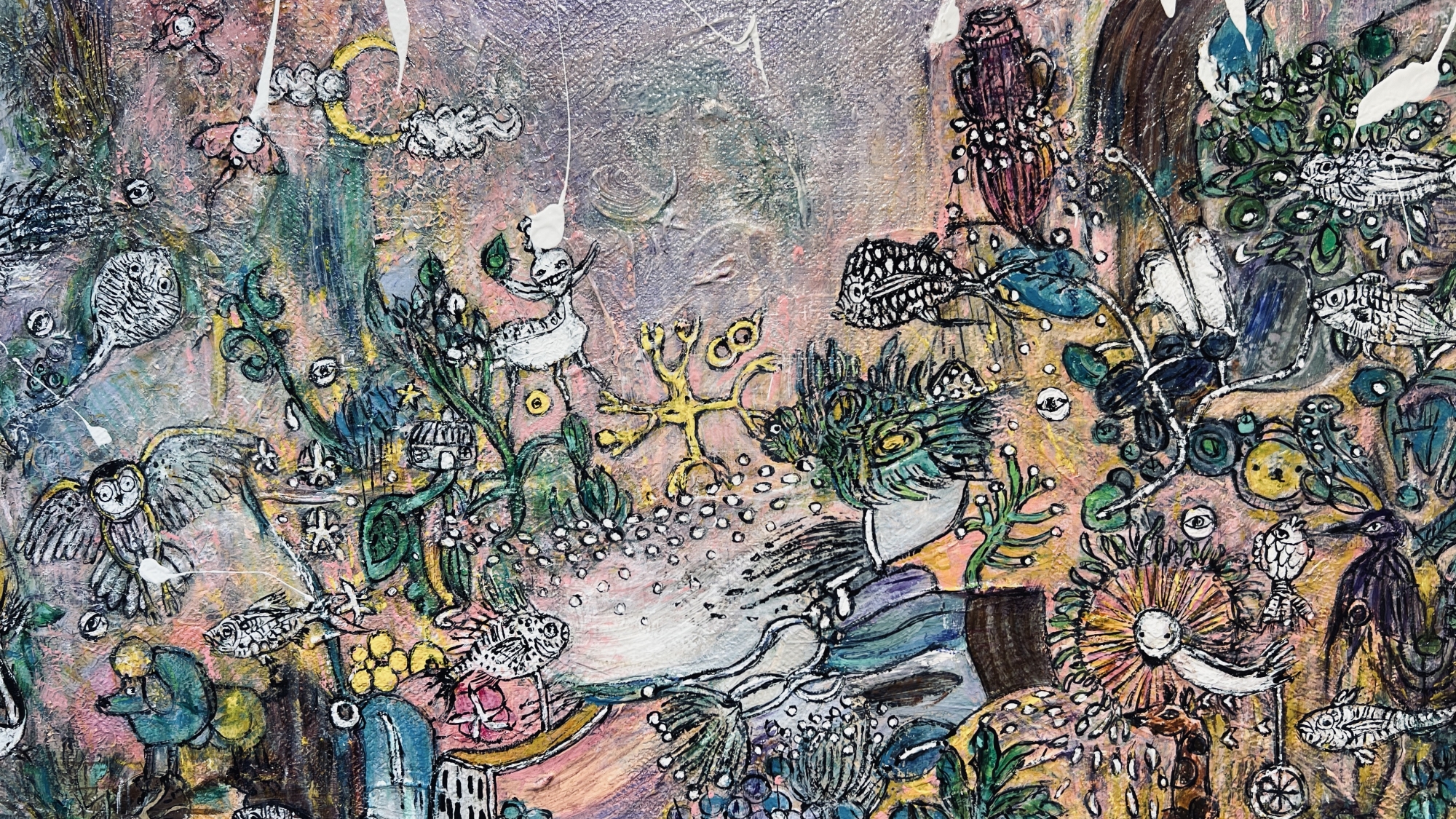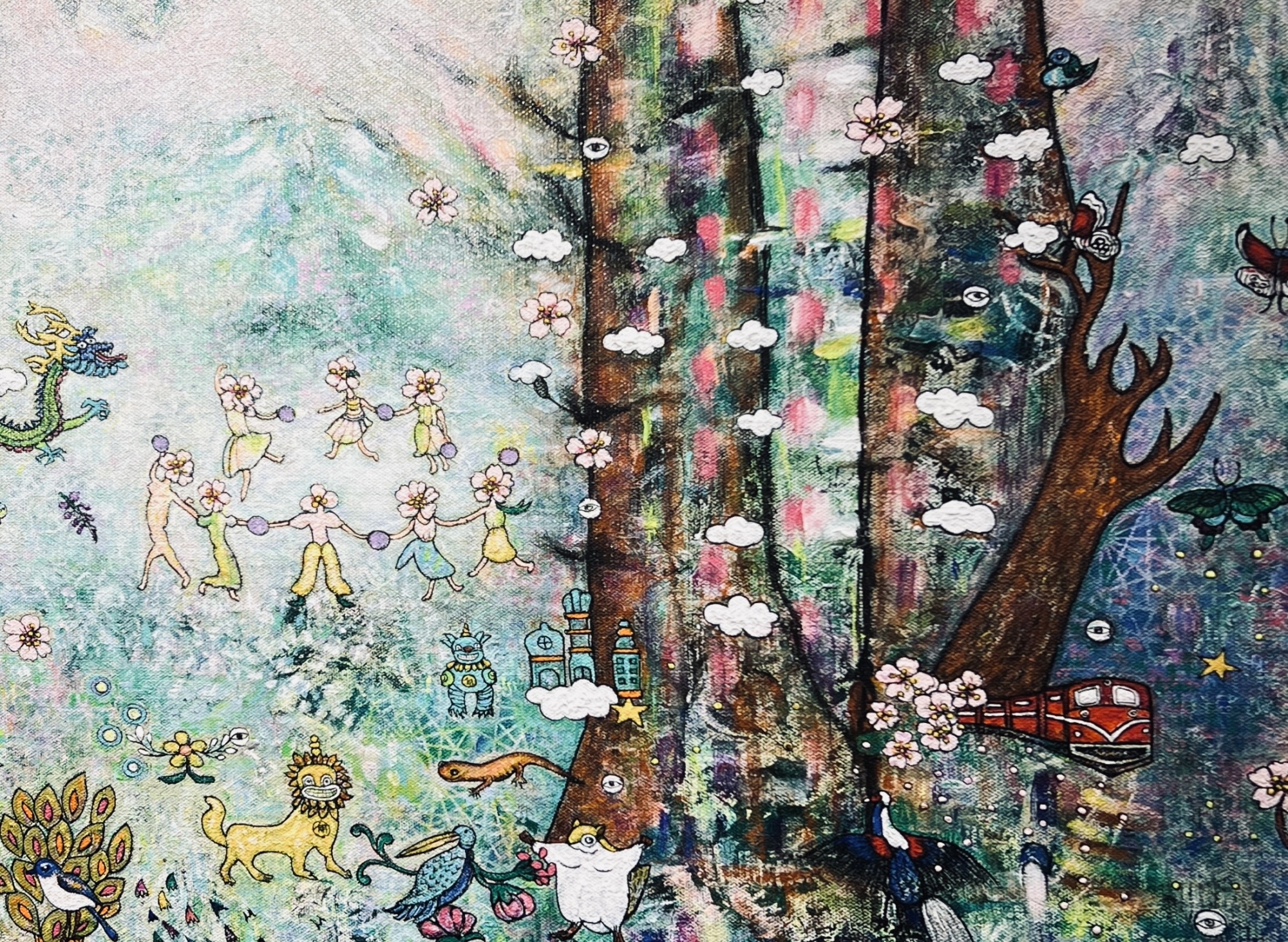藝術作品能表現出越看越有趣境界,要有些各種藝術技巧基本功夫和優異邏輯思維,熊妤在竹市文化局閉關創作藝術品,可以引導視覺深入淺出,由童年到人瑞世界,全部融合在每幅創作彩繪天地裡,每一幅作品,可以由很多不同角度和區域,尋找自我喜好的共鳴視覺,滿足觀賞創作需求。