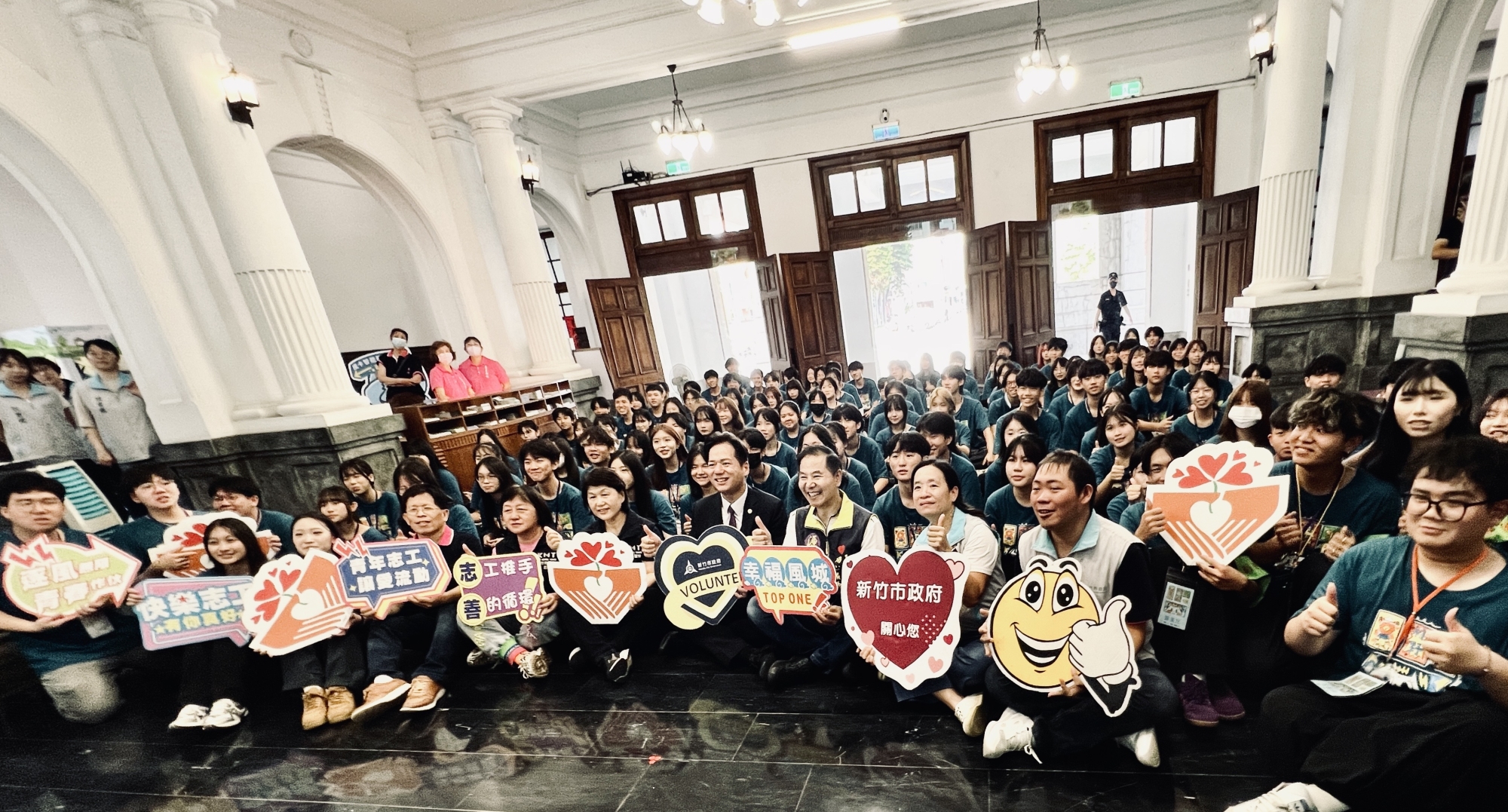 新竹市府今(3)日在市府大廳舉行「新竹市暑期青年返鄉服務志工隊」宣誓、授證與授旗儀式。