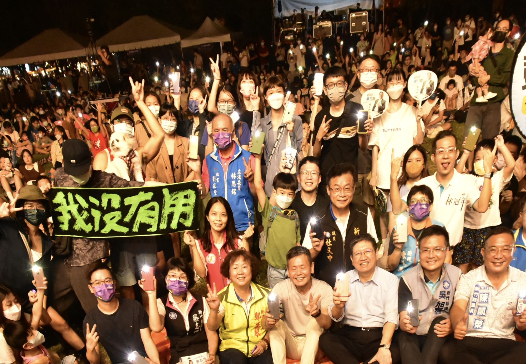 新竹縣政府「2022秋遊星夜季 Let’s Chill」活動自昨(9日)起,連續3天在竹北市水圳森林公園熱鬧登場。在中秋節的今晚進入活動第2天,新竹縣長楊文科也到場和民眾同樂,現身舞台的同時,現場氣氛嗨到最高點。