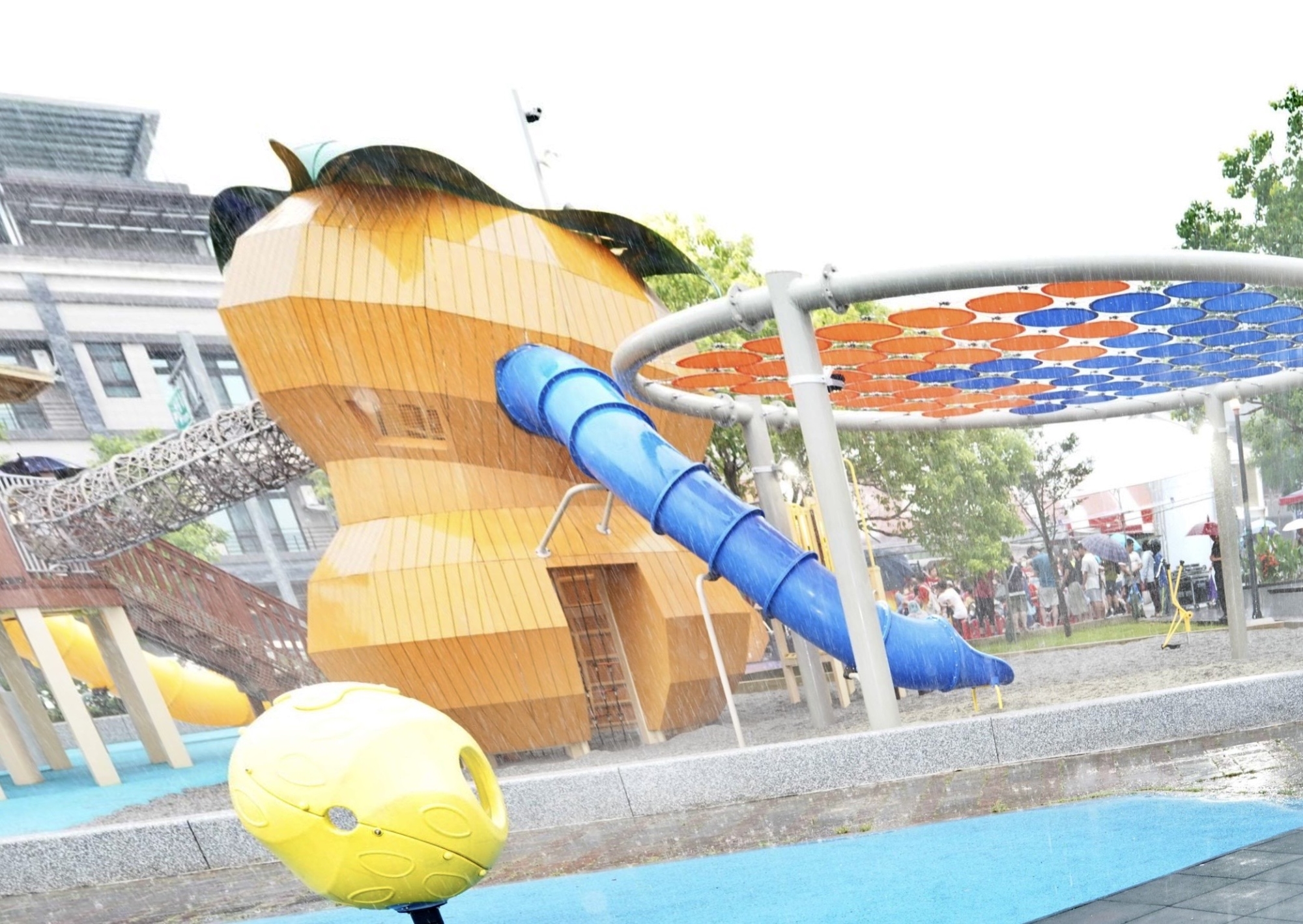 今(20)日下午舉辦開幕儀式,雖遇滂沱大雨,新埔鎮民仍攜家帶眷熱情參加,見證新公園啟用。副縣長陳見賢表示,縣府致力打造「全齡共融、世代友善」的公共空間,未來還有更多特色公園陸續完成,邀請全國大小朋友一起來體驗!