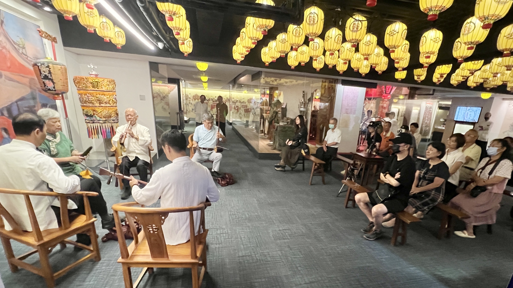臺北市立國樂團葉圭安老師及多位絃友,22日(週二)上午九點三十分,在金長和媽祖水仙文物館唱奏,美妙音符讓聽眾讚不絕口,以熱烈掌聲致謝。