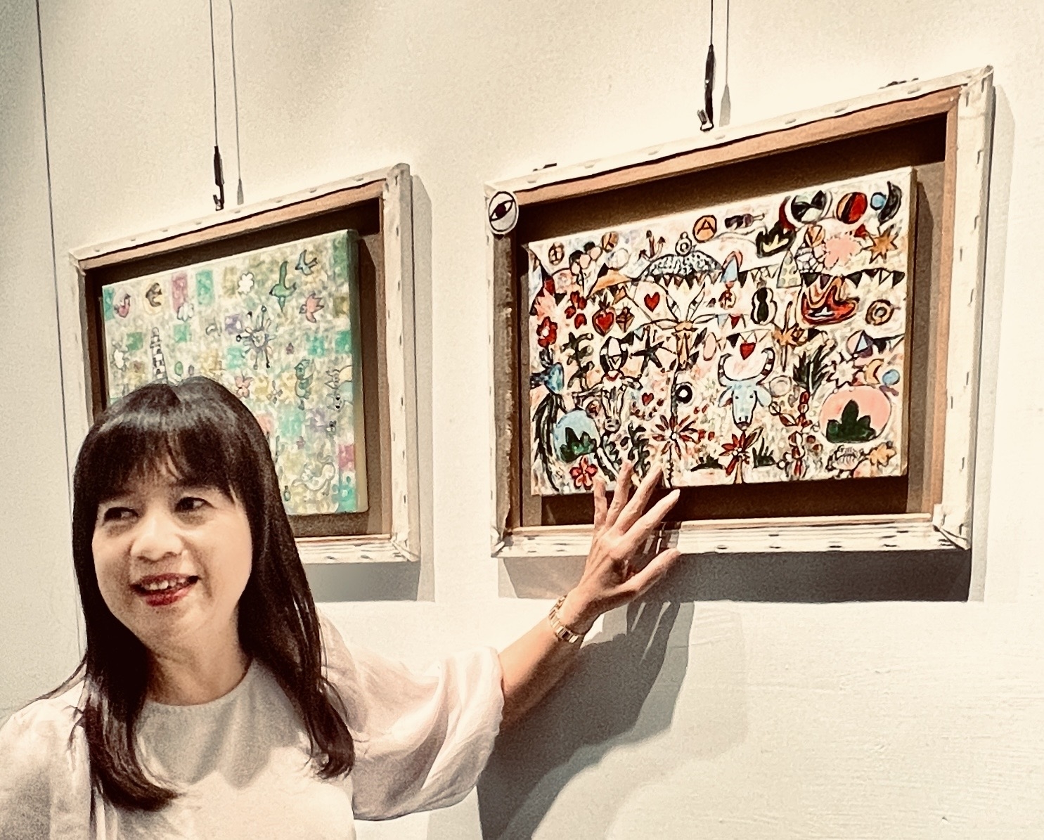 藝術作品能表現出越看越有趣境界,要有些各種藝術技巧基本功夫和優異邏輯思維,熊妤在竹縣文化局閉關創作藝術品,可以引導視覺深入淺出,由童年到人瑞世界,全部融合在每幅創作彩繪天地裡。
