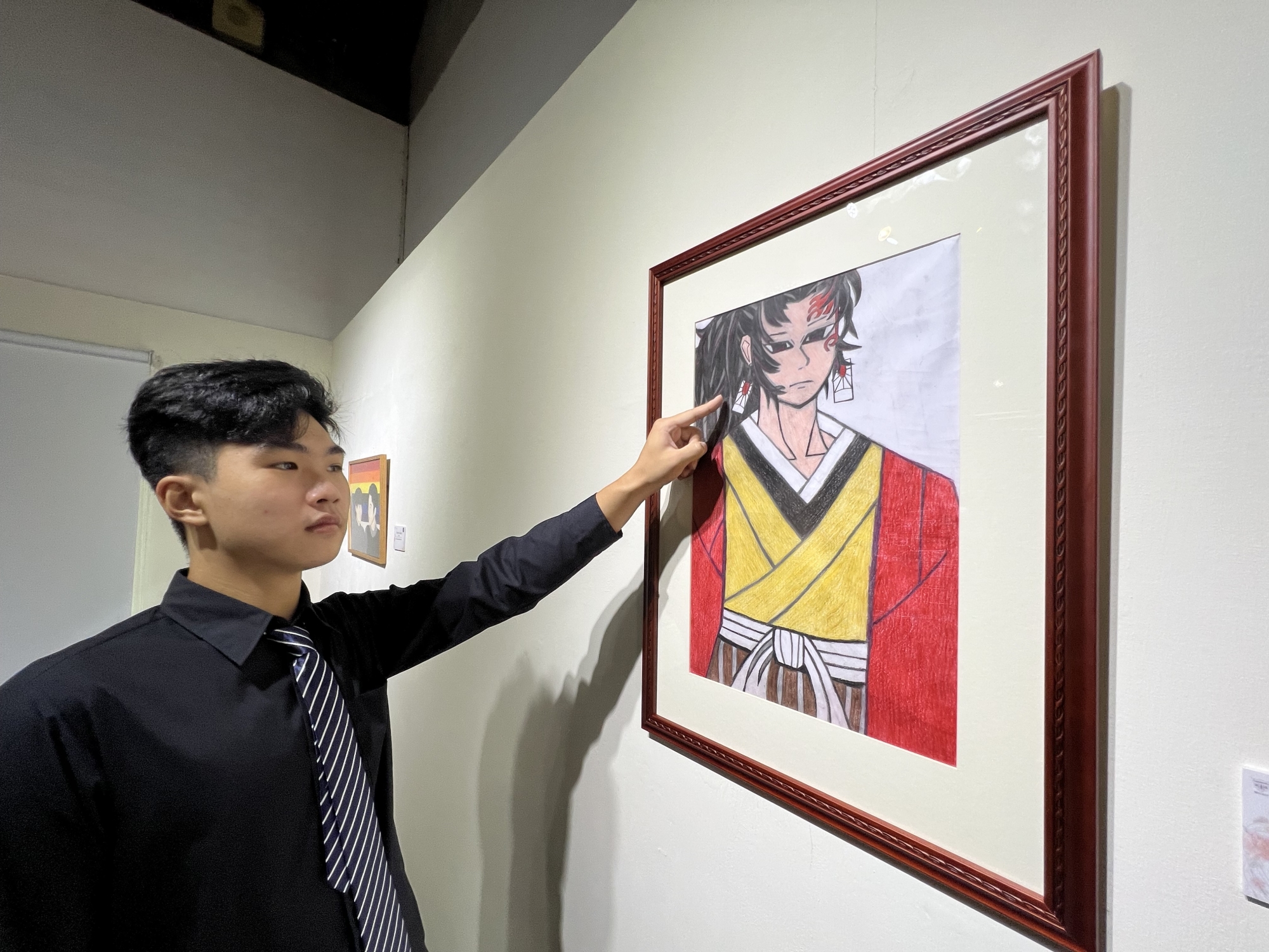葉冠甫同學以彩色畫筆完成的卡通人物造型「繼國緣壹」作品,筆筆用心畫出在他遇到困難的時候,指引他斬除障礙精神人物。