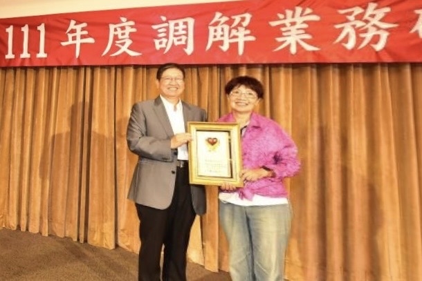 新竹縣府表揚110年度調解業務績優單位及人員,18名獲縣長獎的調解委員當中,由竹北市調解委員會主席吳郭雪琴以獨任55件調解案再度獨占鰲頭。她受訪時謙稱是因為竹北市案件較多,自然成立數就比較多,但她也提到,調解過程中要能同理兩造的心情,再好好勸說冷靜,「耐心很重要」。