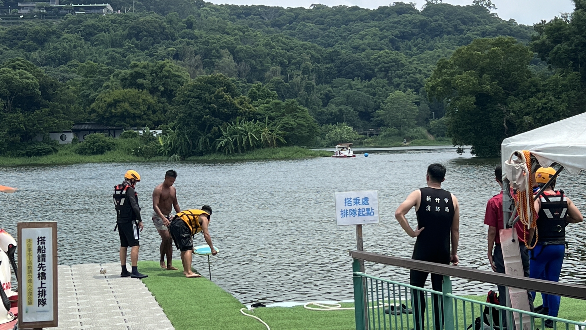 竹市消防人員在青草湖救生訓練強化救護功能 何高祿攝