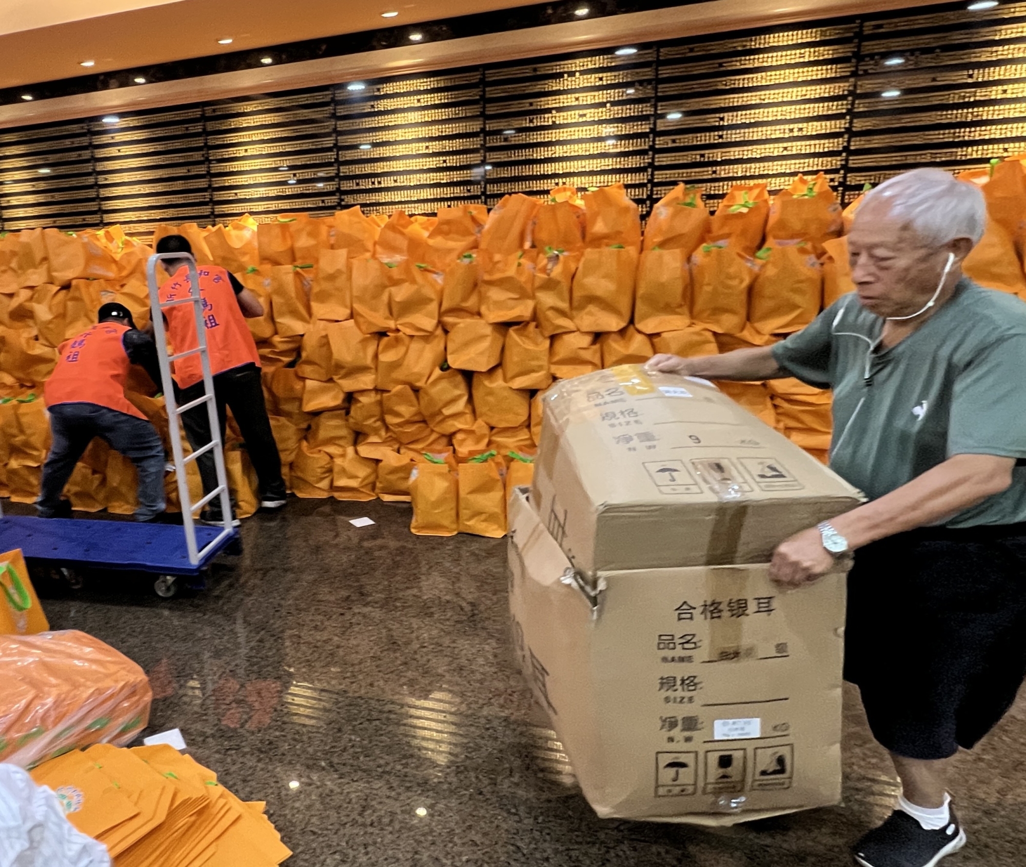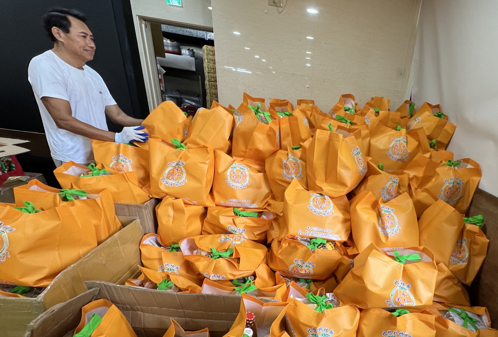 一萬五六千份祭品,包裝入手確實不容易張羅,幸好有不少志工熱忱志工投入,化解困境。長和宮主委楊金土率領志工打包祭品,長和社區發展協會理事長陳金生全力支援打包祭品,退休員警熱忱投入眾街普,小白議員劉康彥團隊加入打包志工隊,議員楊玲宜團隊自動參與包裝,為十四日眾街普成千上萬祭品揮汗忙碌。