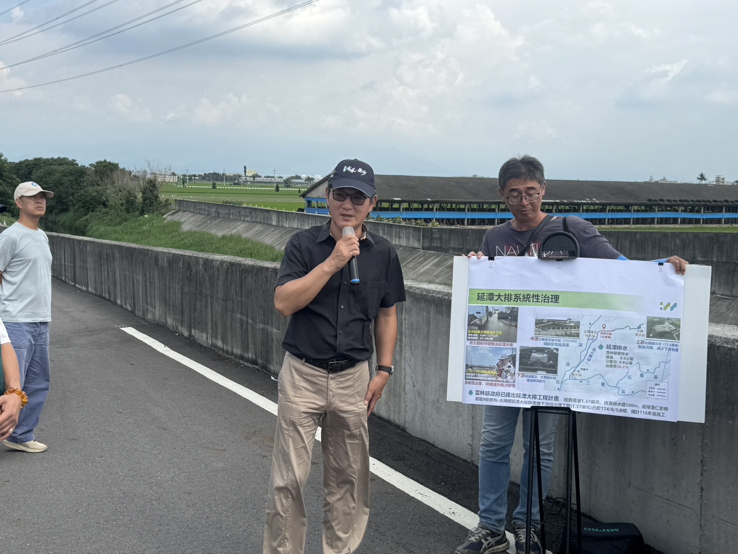 第五河川分署長吳明華說明,在大埤鄉,今年7月5日行政院院長卓榮泰至大埤鄉延潭大排會勘同意治理工程斥資1.37億元,目前已順利決標,預計116年3月完工,同時大埤抽水站機組更新也加速推動,將有效提升抽排能量另石龜溪早知柳樹腳(四期)改善工程為重點,總長約1.2公里,經費達3.6億元,預計今年完成土地徵收,115年度即可動工,工程完成後可大幅降低洪水威脅。