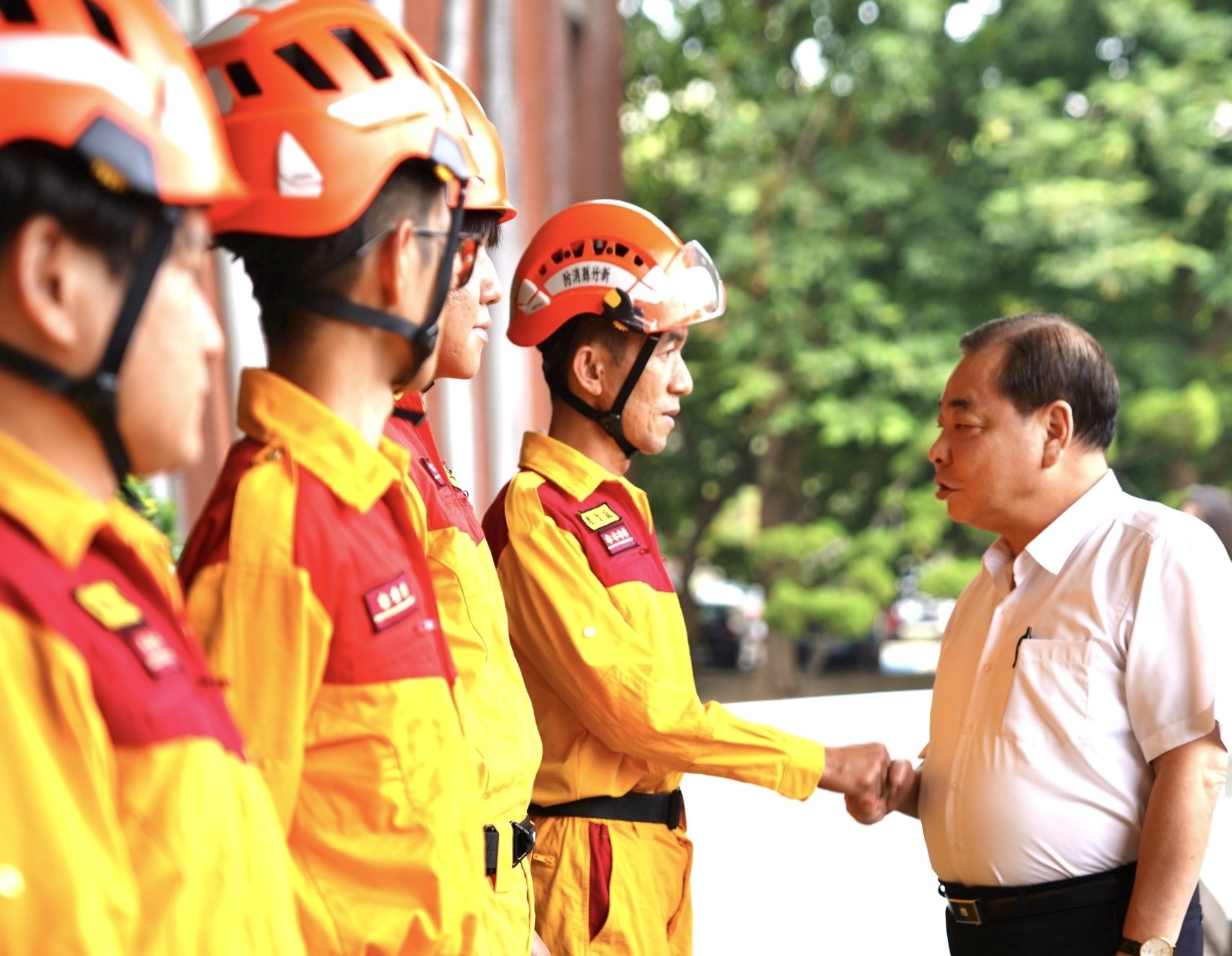 陳見賢(右)叮嚀搶救人命,也留意自身安全 何高祿攝