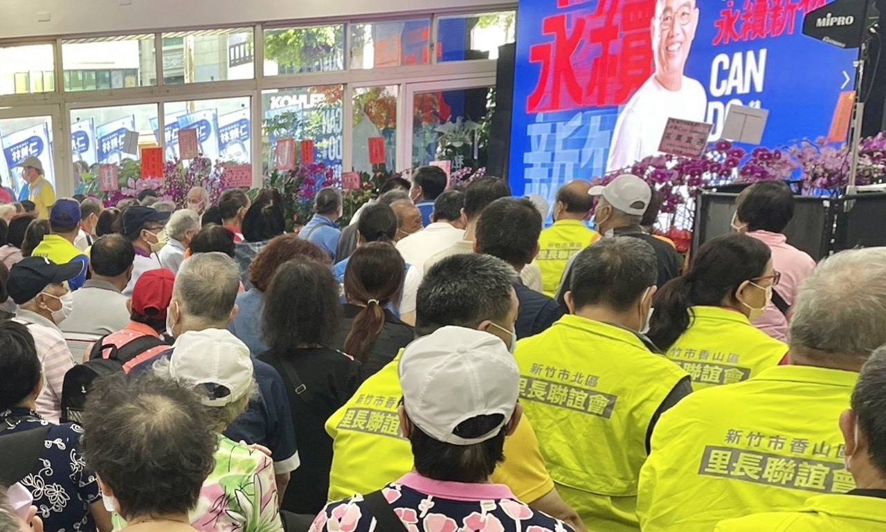 位於新竹市經國路一段六七五號競選總部,一早即出現人潮,展現人脈氣勢。