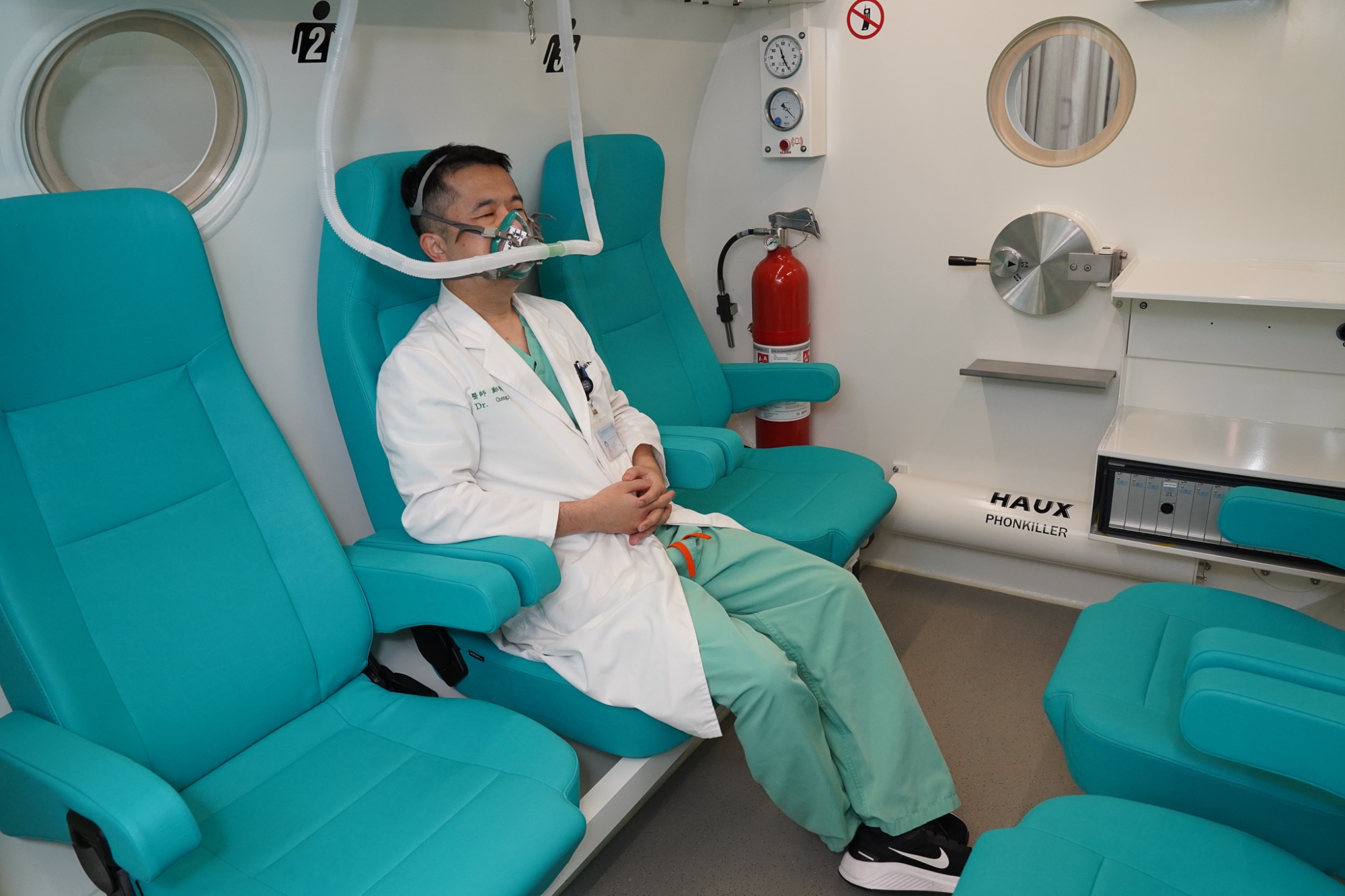 鄭博斌醫師指出,高壓氧治療急性突發性耳聾的臨床原理是藉由在一段特定時間之內,呼吸高於1.4個大氣壓力(1.4 ATA)的100%純氧,進而增加全身組織含氧量來改善內耳缺氧狀況。此外,高壓氧治療也可以降低血液黏稠度,增進血液在微血管的灌流以及增進組織修復能力。