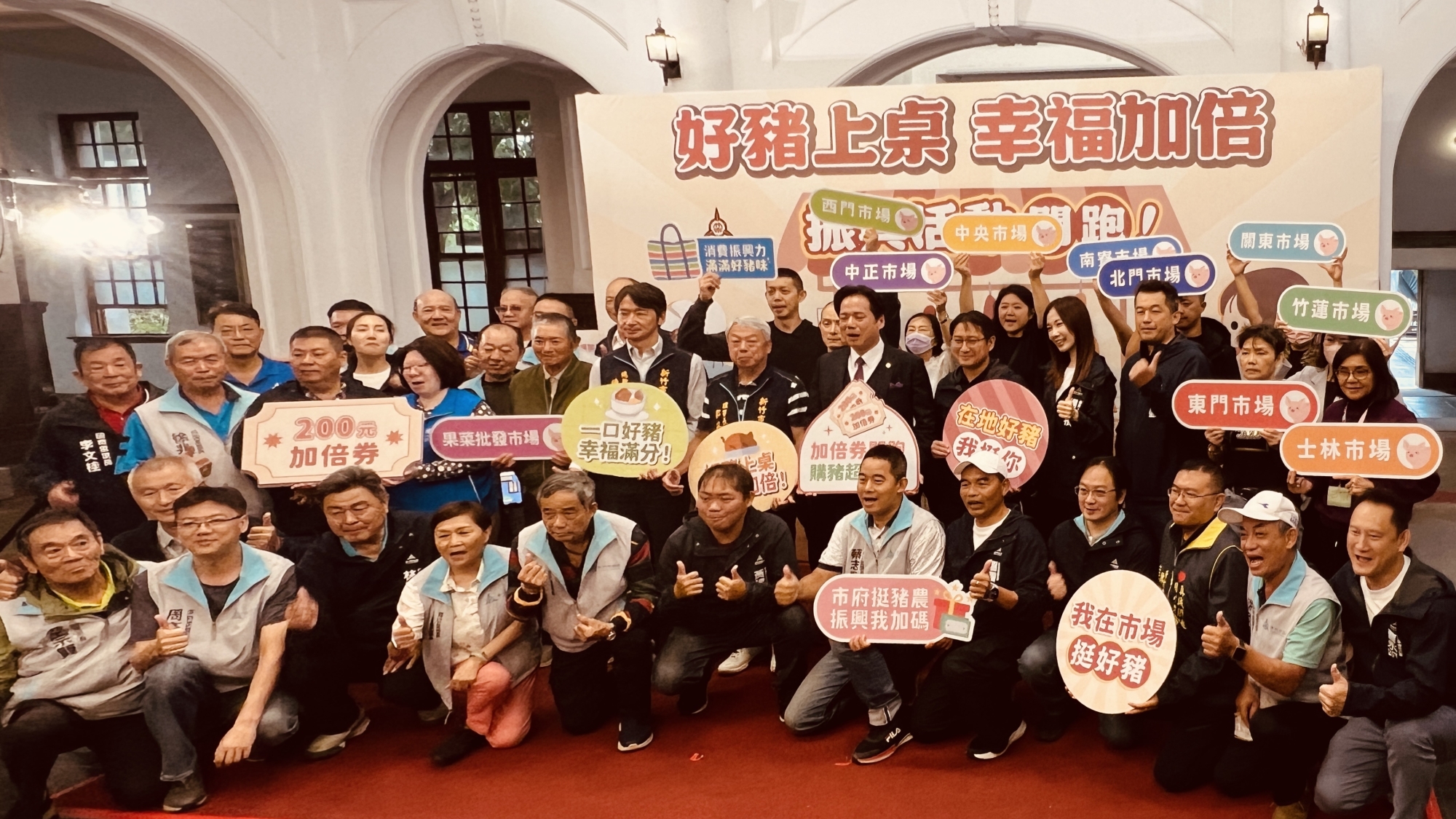 代理市長邱臣遠宣布, 14日至15日於各大市場發放「100元換200元加倍券」,以實際行動支持在地豬肉業者,鼓勵市民踴躍消費。