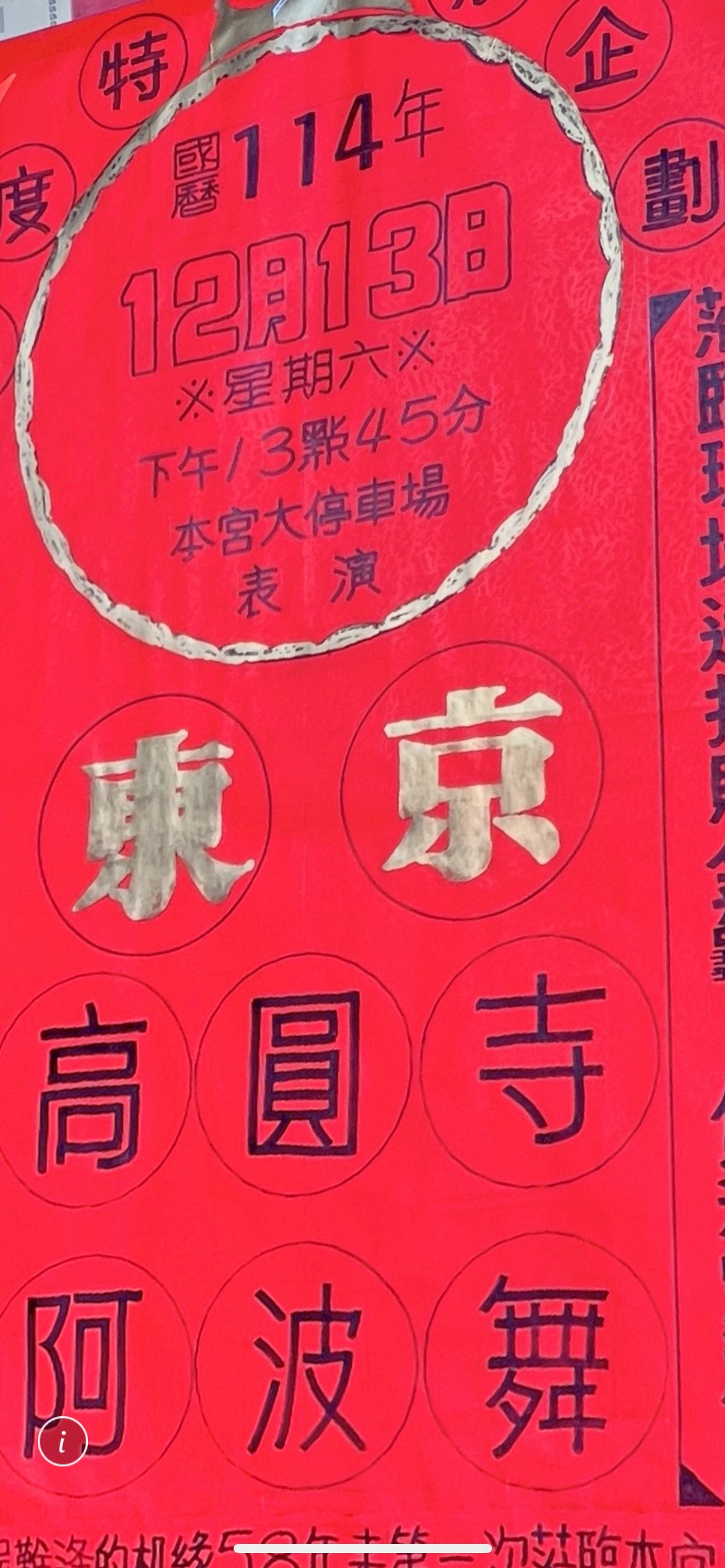 定12月13日星期六下午13:45,在新竹普天宮大停車場開鑼獻藝,歡迎民眾自由到場觀賞,把握難得遇到的日本傳統祭典文化現場真實呈現。