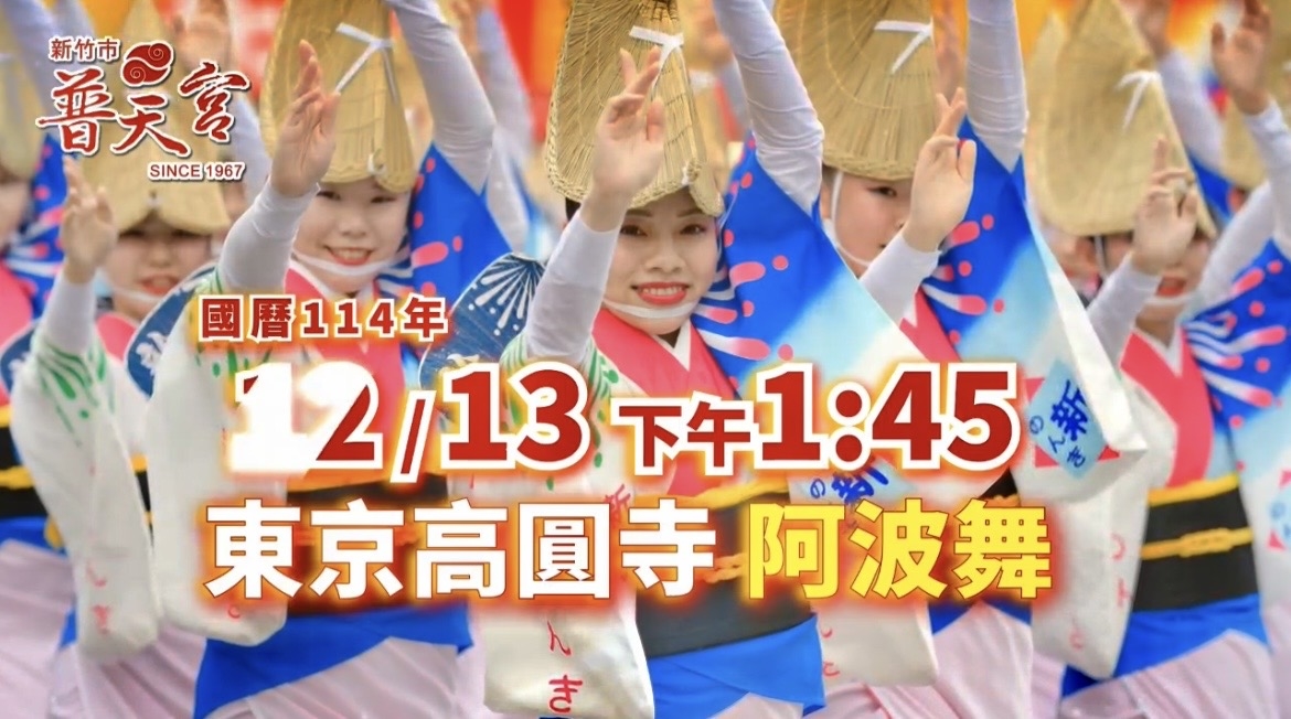 新竹普天宮成立五十八年來首次邀請,日本東京高圓寺特有陣頭祭典文化阿波舞,移陣到普天宮敲鑼打鼓盛大熱鬧表演。