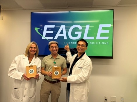 劉健群說,Eagle Analytical Services公司為製藥公司提供分析化學和微生物檢測、諮詢服務及其他技術服務,Eagle Analytical Services擁有科學和製藥專家、先進的設備、動態系統和先進的流程,北醫同學學習到分析化學和微生物檢測等技術,與公司主管豪影,也致贈禮物並邀請到北醫來訪問。