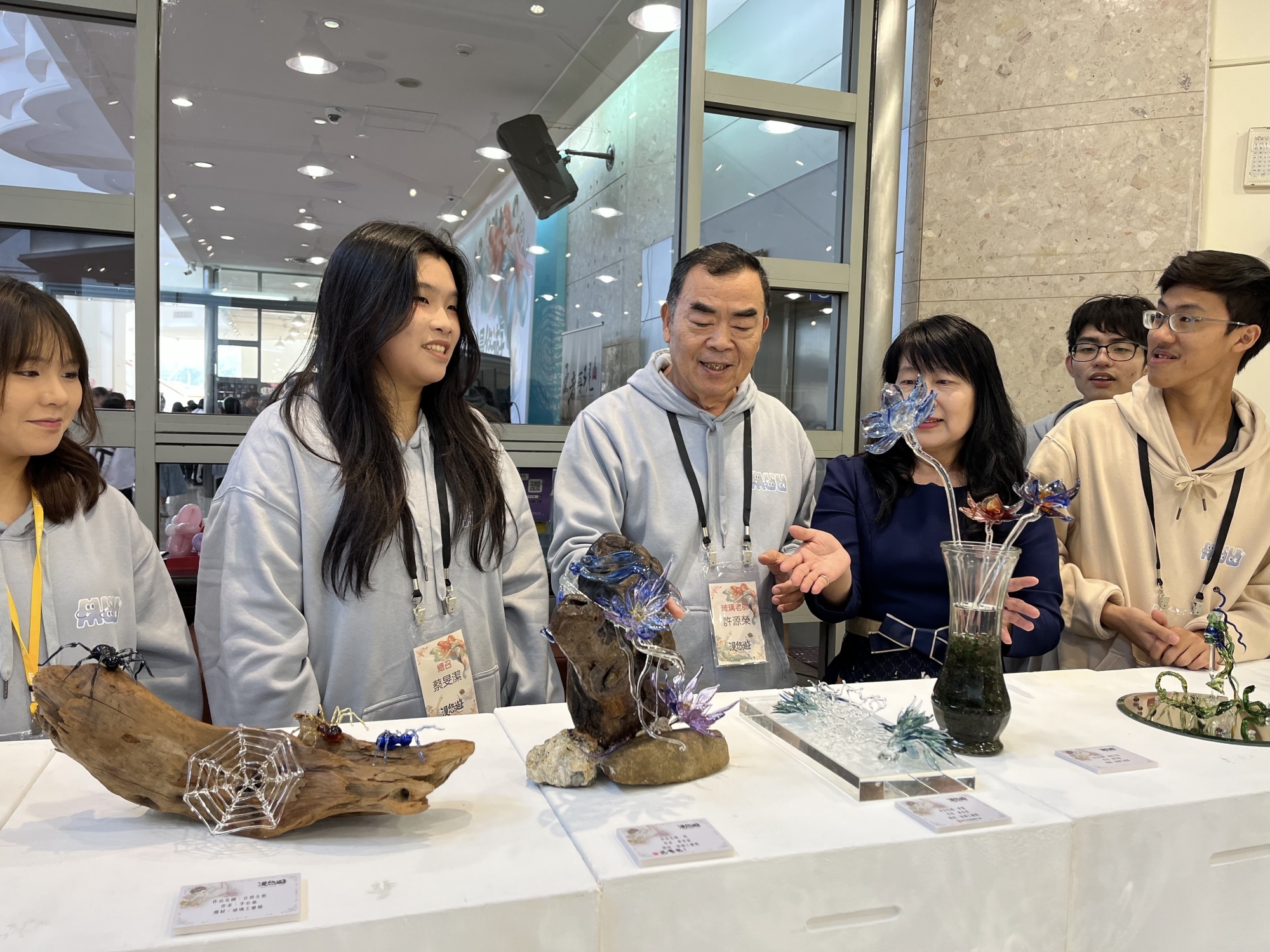 香中特聘玻璃創意老師、工藝師許源榮為香中畢業工藝展加溫說,這次學生創意創新,玻璃步入精工境界,陶瓷結合成為一個作品,最具有特色作品。如蔡旻潔,曇花作品,吳駱志遠作品萬物生李佑慈,自然生態作品和葉羽芹作品都展現栩栩如生活力,有更進步媒材的結合,相當難得。