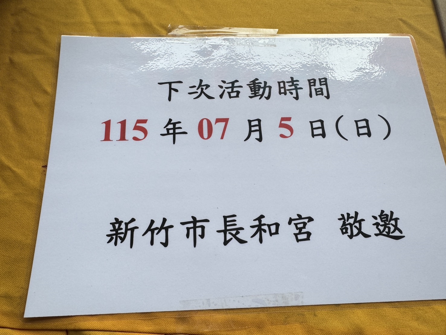 為提醒下一個血荒期,暑假再發揮挽袖捐血行善,在這次捐血會場長和宮前發出告示,下次活動時間115年07月5日(日),新竹市長和宮敬邀。