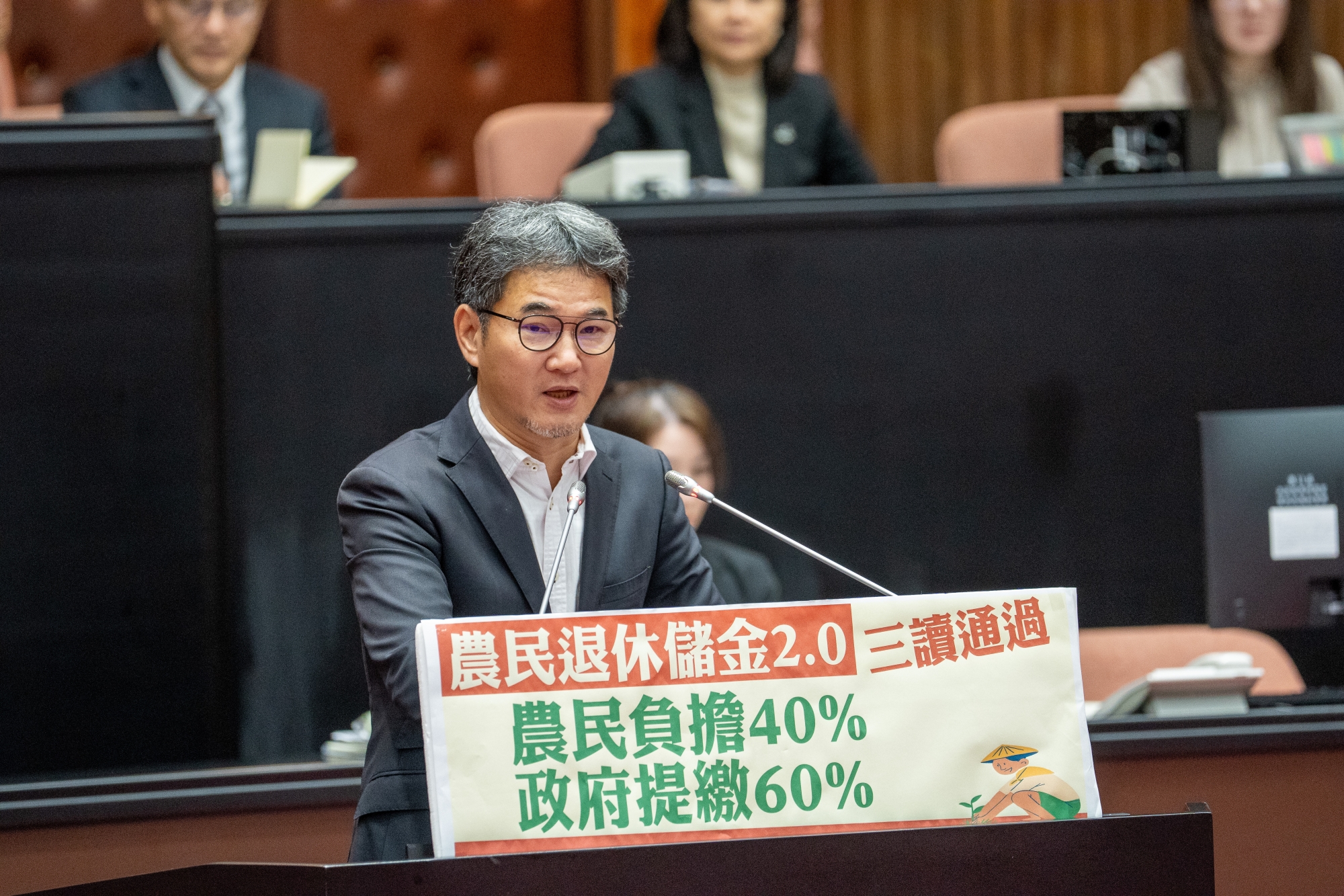 立法院今(27)日上午三讀通過《農民退休儲金條例》修正案。立委劉建國表示,回想2020年他與時任農委會主委陳吉仲以及多位委員共同推動《農民退休儲金條例》,並成功在當年5月22日完成三讀,正式為農民退休生活建立制度與保障;然而制度上路至今,農民退休儲金的實際覆蓋率仍未過半,顯示在執行及宣導上都有一定的問題存在。