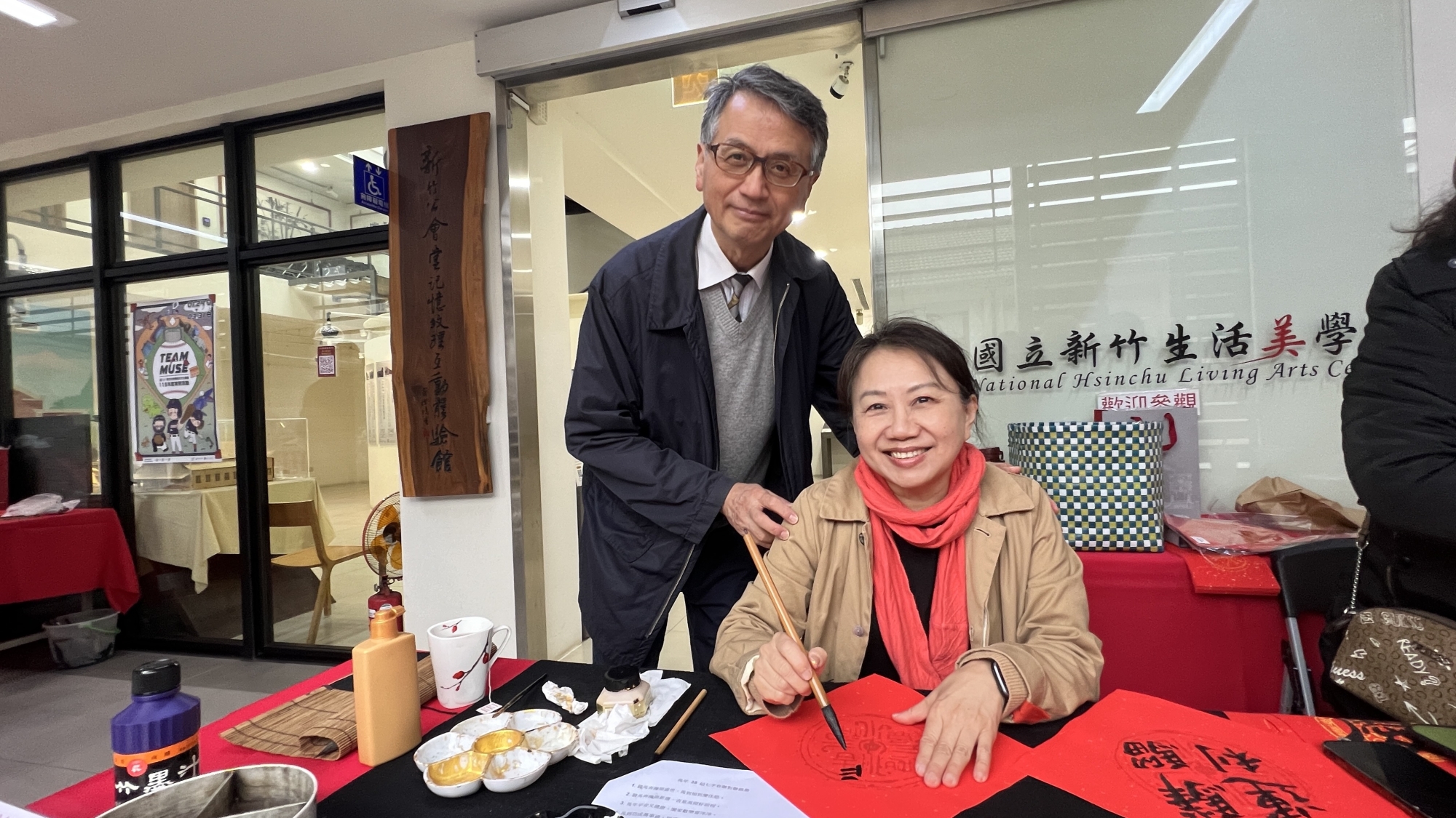 建華美術老師蘇富美和夫婿王承先開心揮毫 何高祿攝