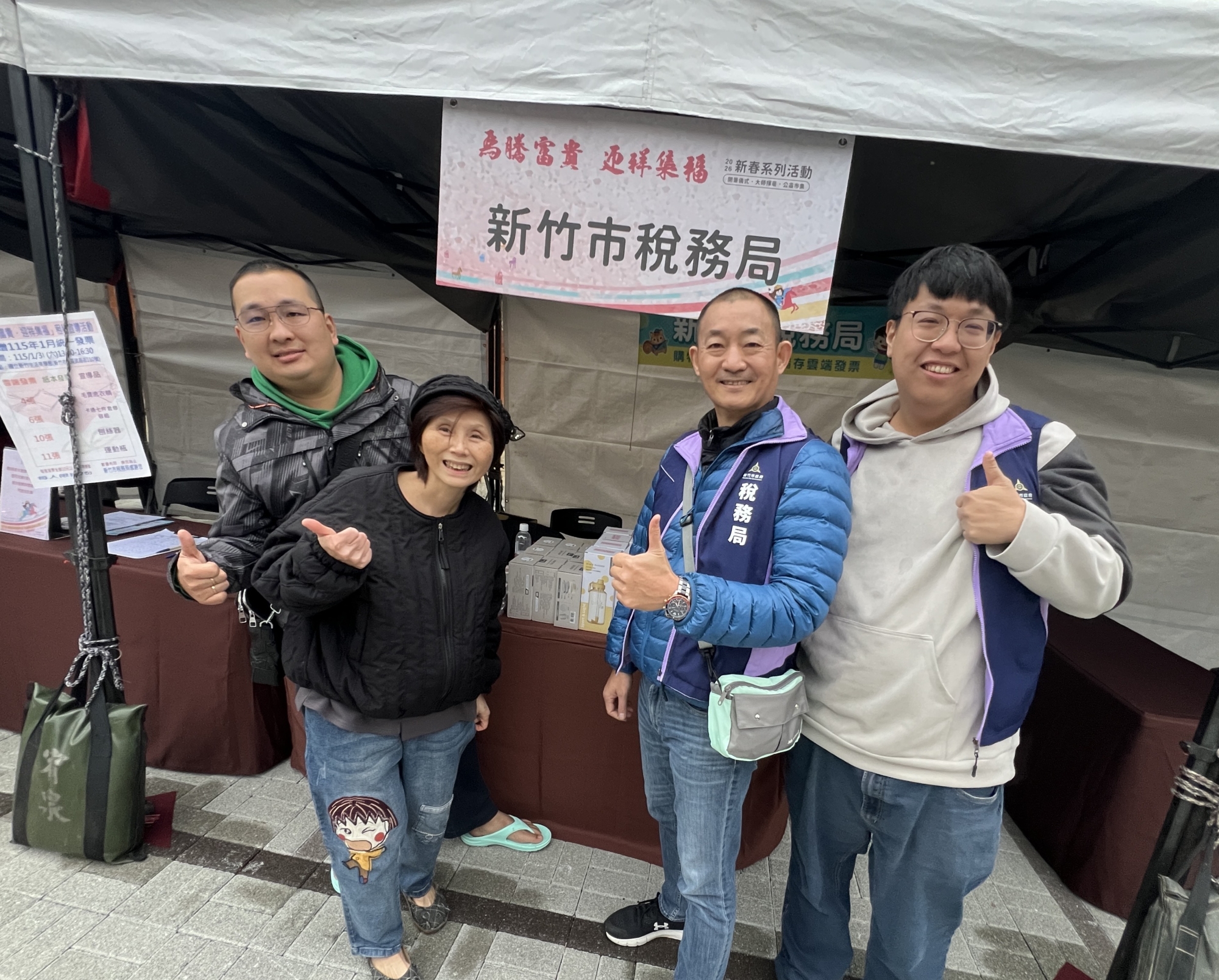 竹市稅務局黃志鳴(右二)和夥伴開心解答稅務 何高祿攝