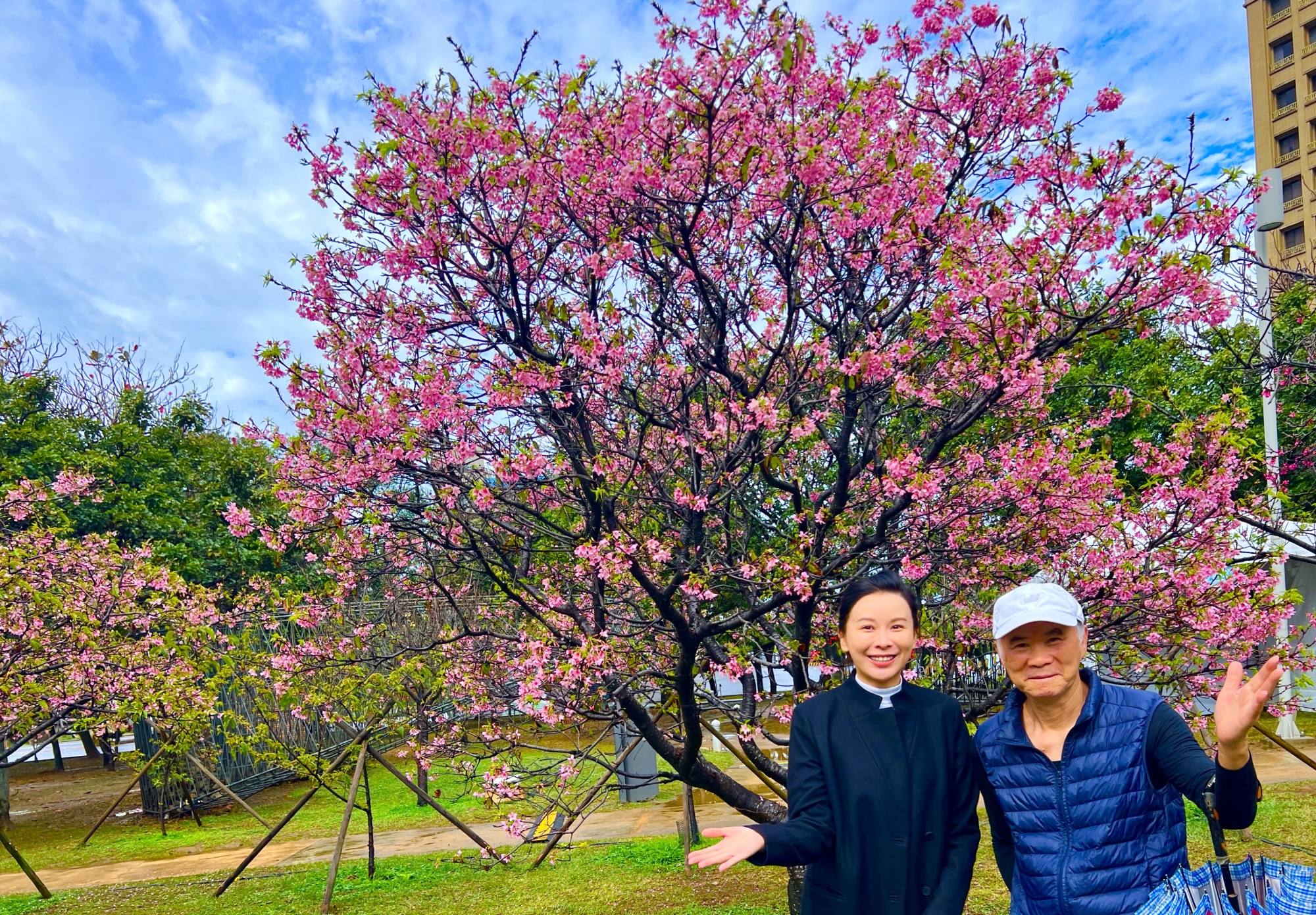 右起林季蓉和徐惟充開心迎接櫻花季 何高祿攝