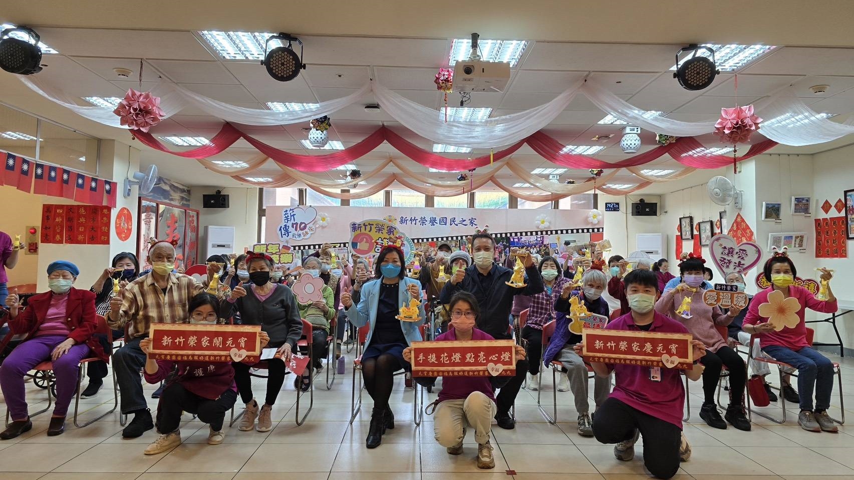 新竹榮家為慶祝元宵節,帶住民長輩一起手作金馬提燈、趣味猜燈謎等活動,並準備美味的應景湯圓,讓住民長輩吃喝玩樂不亦樂乎,度過一個充滿趣味的元宵佳節。