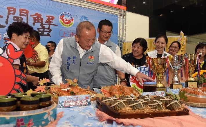 苗栗縣政府及養殖業者5日舉行優質大閘蟹上市發表會,宣告鮮甜彈牙的大閘蟹開放訂購品嘗,滿足老饕的味蕾。縣長徐耀昌表示,農業單位用心輔導業者採「綠色生態」及「疏養」自然養殖技術,並以益生菌改善水質,上市的大閘蟹都有防偽蟹環由官方掛保證,均通過64項藥物殘留及重金屬含量的嚴格檢測,為食安嚴格把關,雙十節連假將掀起第一波品蟹熱潮。