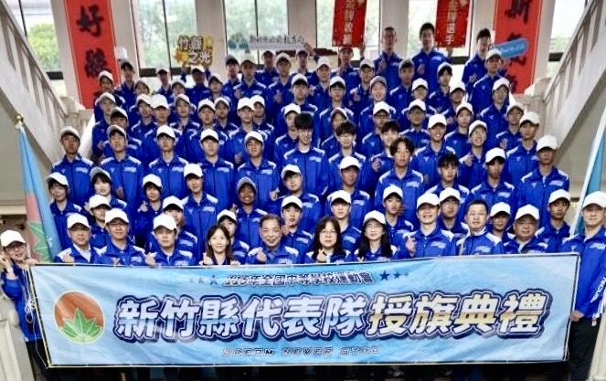 「115 年全國中等學校運動會」即將於4月18日至23日在嘉義縣點燃戰火。新竹縣將有622名選手及隊職員參加。副縣長陳見賢、教育局長蔡淑貞今(8)日上午在縣府一樓大廳授旗,由去年在全中運奪銀牌的湖口高中射箭選手蔡一禾及尖石國中柔道選手彼黛.巴巴克代表接旗,陳副縣長並代表楊文科縣長頒發加菜金,勉勵選手旗開得勝,盡全力爭取好成績為新竹縣爭光。