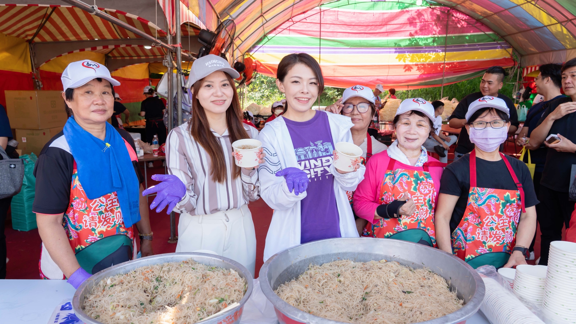 高虹安表示,今日準備了最道地的新竹特產貢丸湯與炒米粉,就是希望讓長途跋涉的信眾們能感受到竹市的溫暖,將這份平安與福氣傳遞下去,也特別感謝新竹市風廚師餐飲觀光發展協會熱情支援,讓應援行動更加順利圓滿。