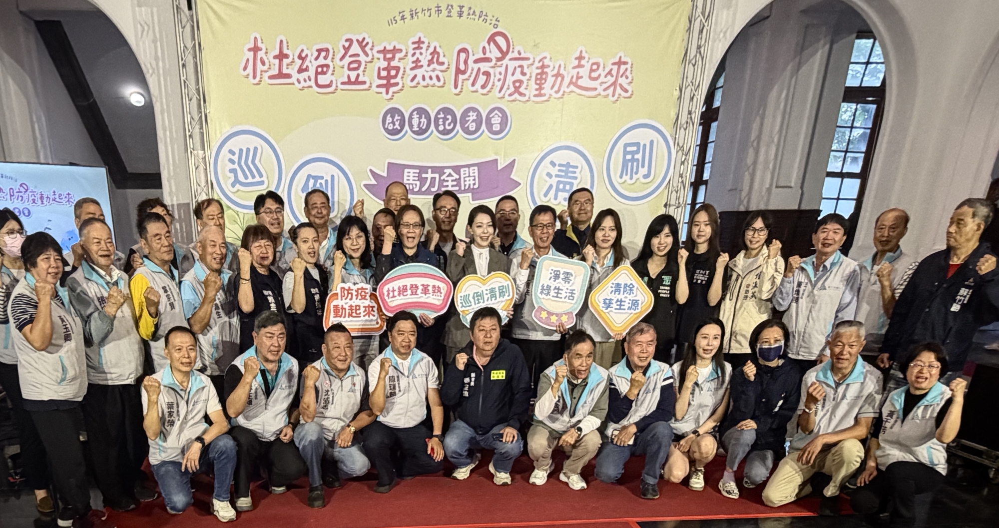 新竹市政府持續推動登革熱病媒蚊防治工作,24日召開「杜絕登革熱 防疫動起來」啟動記者會,市長高虹安帶領三區區公所區長及里長,共同啟動「巡、倒、清、刷」登革熱防治行動,正式宣告竹市登革熱孳生源清除與環境巡檢工作全面展開,將結合區公所、里長及環保志工團隊,加強社區孳生源清除與環境巡查,提升市民防疫意識,共同預防與遏止登革熱疫情。