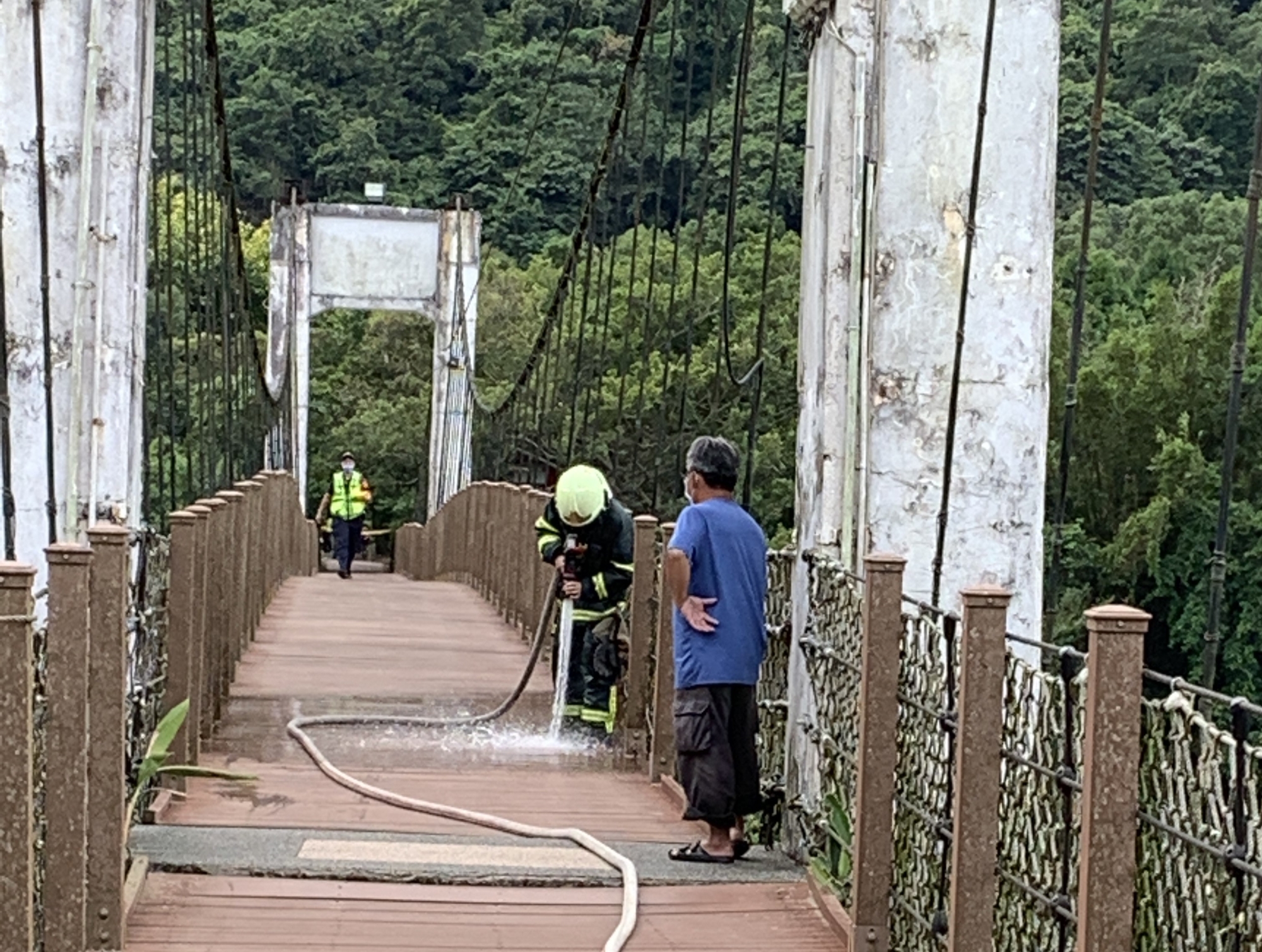 內灣吊橋突冒煙 疑似亂丟菸蒂惹禍