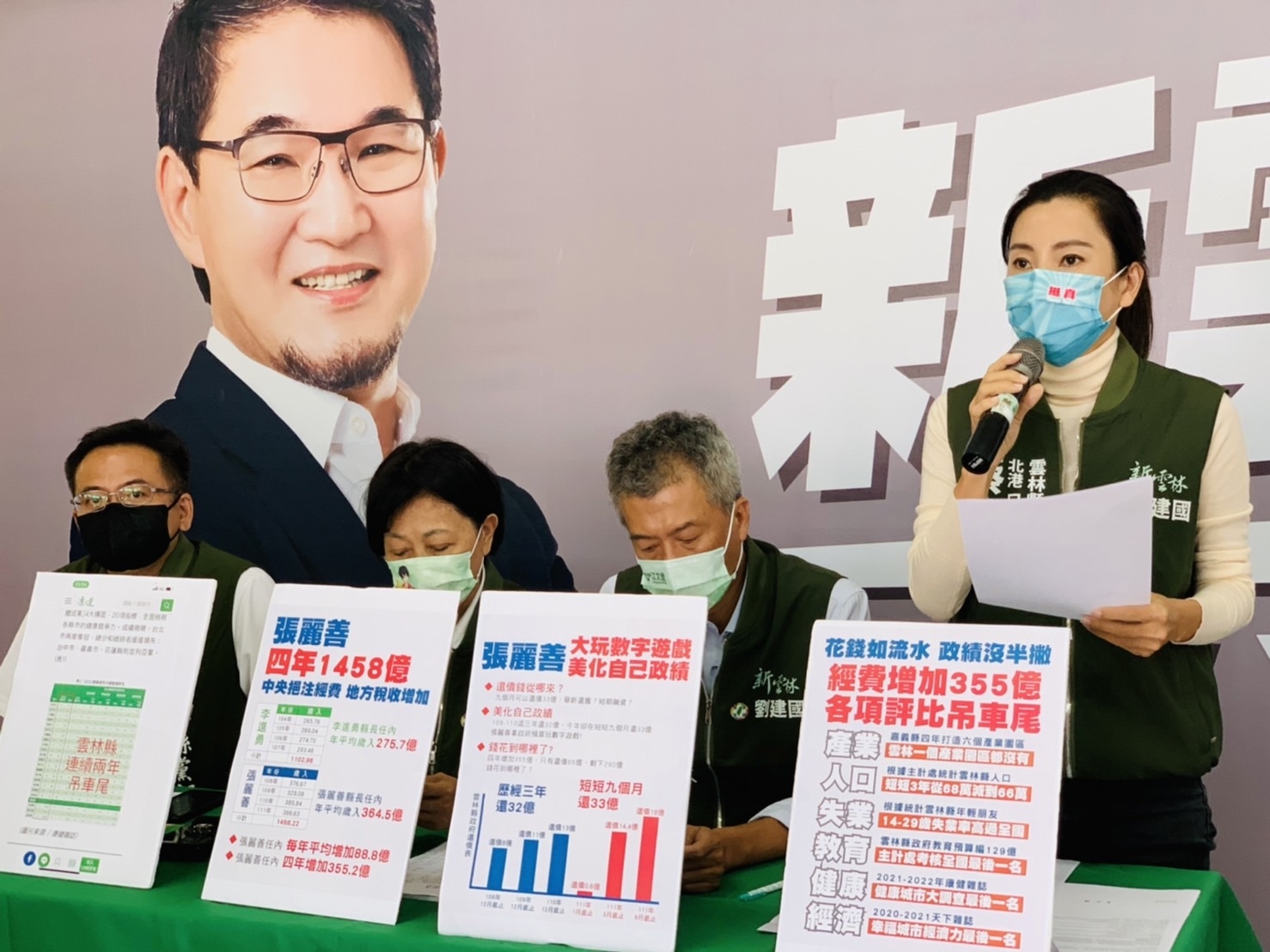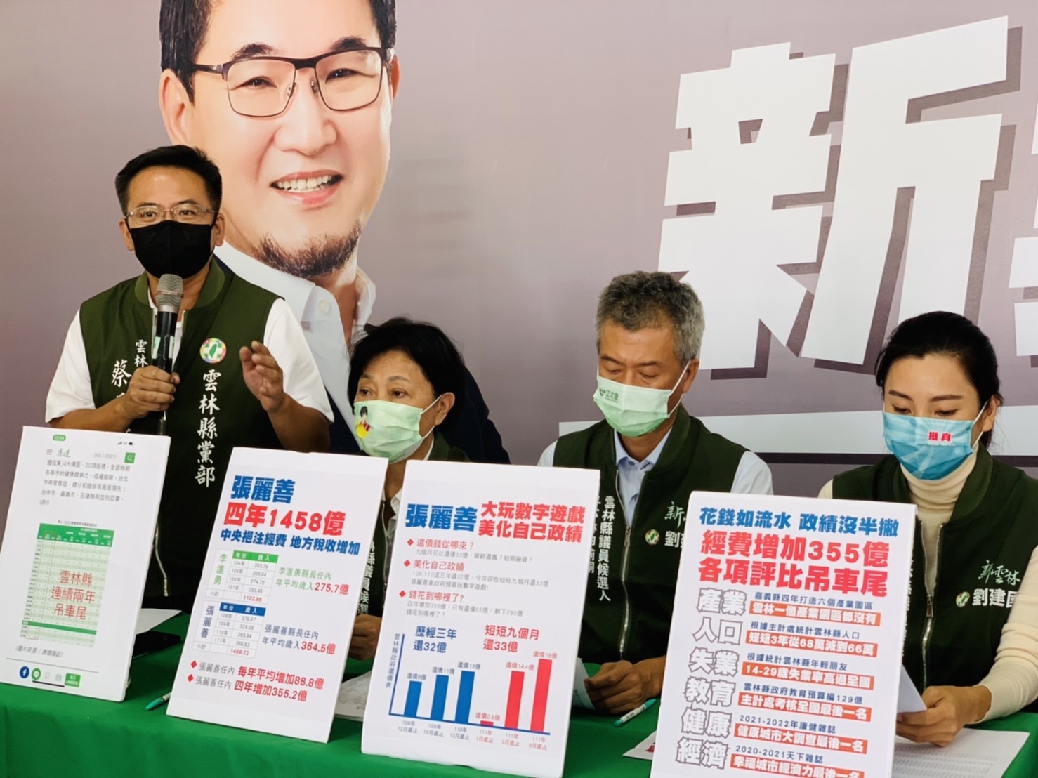 張麗善對外宣稱這三年多任內減債68億元,劉建國競選總部發言人林廉貴與蔡岳儒議員、蔡孟真議員、江文登議員、周秀月議員召開記者會痛批張麗善玩弄數字遊戲,事實是她這四年因為接受中央經費補助等因素,經費比前任縣長多了355.2億元,扣掉還債,還有近290億元,但縣民卻看不到雲林因為多了這些經費,在建設上有何進歩,反而是多項政績吊車尾,呼籲張麗善誠心面對執政不力的事實,別再拿一些數字來欺騙縣民!