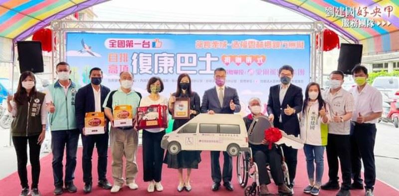 [記者劉沂淵/報導]愛爾麗醫療集團捐贈雲林「全國第一台自排高頂復康巴士」,在東勢正式啟用!內政部長徐國勇、愛爾麗醫療集團執行長劉怡萱、立委劉建國與蘇治芬、雲林縣復健青年協進會理事長劉長庚一同見證,感謝企業善心回饋鄉土!