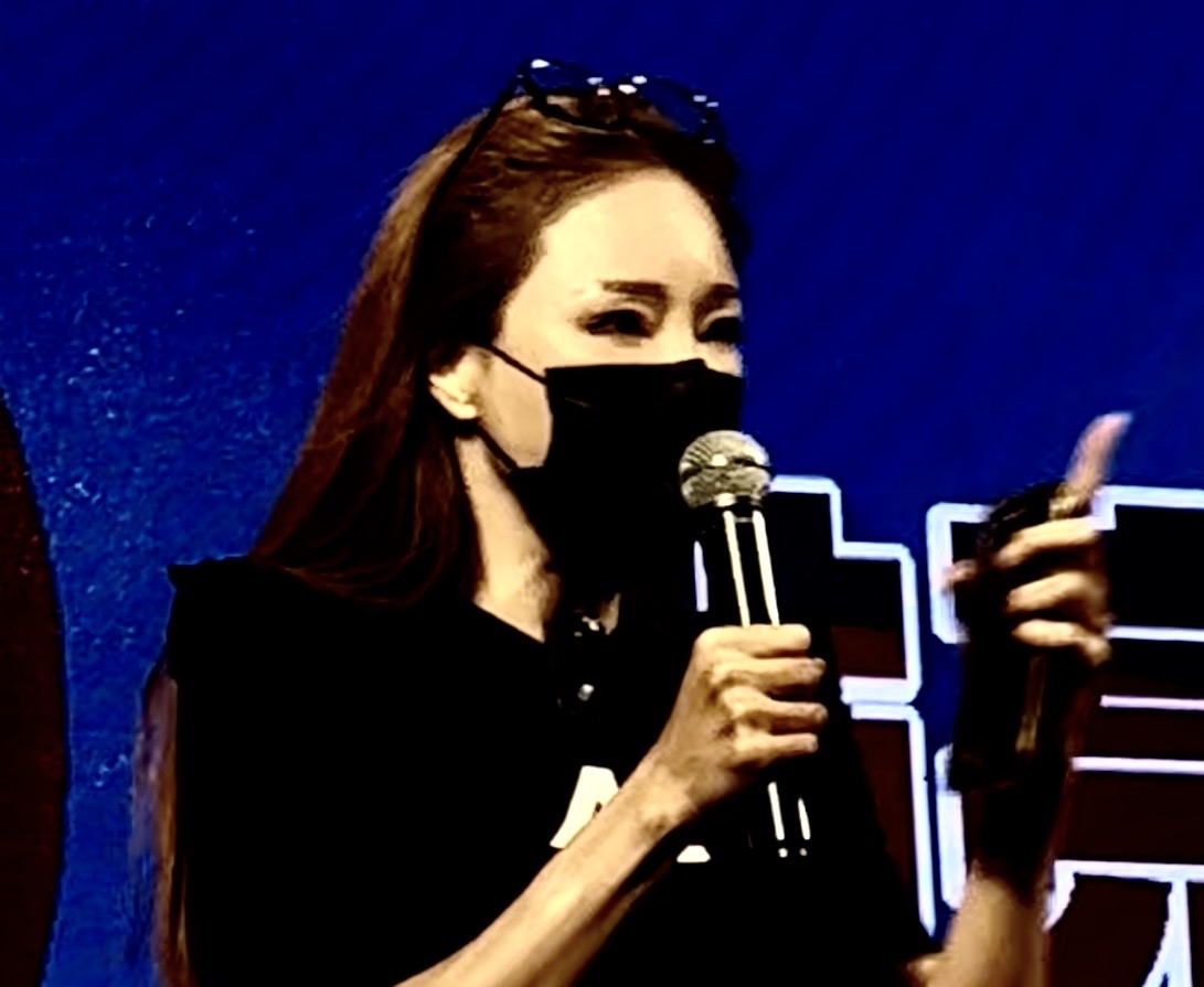 在場景無窮變化時空裡,出現各種影音播送高手,有單人、二人和多人組合,直播和錄影隨心所欲,其中一位身材高䠷,上裝黑色配上大紅造形長褲,美裝上放電睫毛,來回在會場遊走,由數位輕機直播手跟拍,吸引不少好奇目光!這位放電美女突然出現在,批評了一陣中天關台,政府干擾的新聞自由,被直播迷發現她是高鈞鈞,身高173/51, 34E,25,36,美國田納西州大碩士, 是中英主持也是模特。
