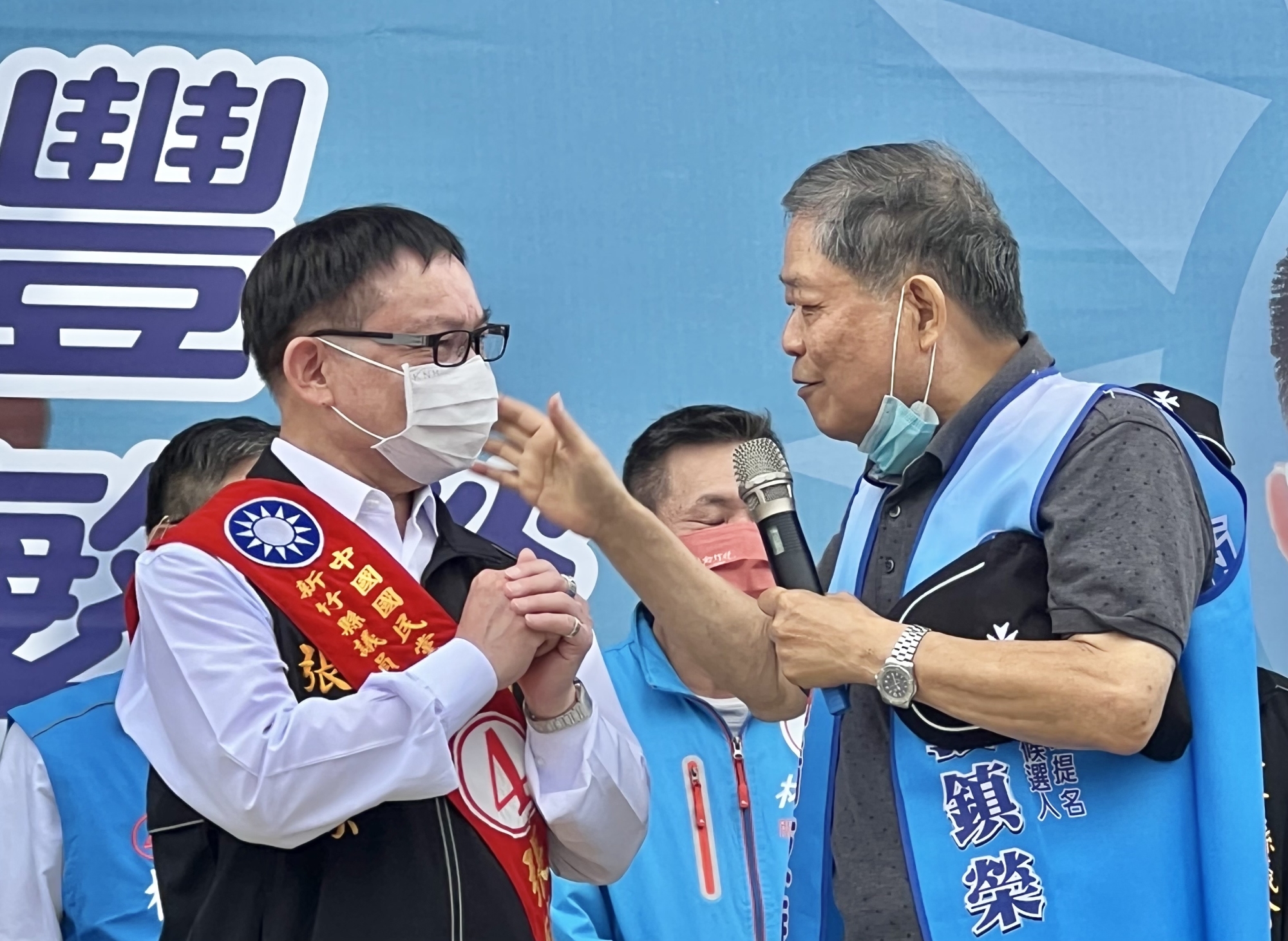 國民黨竹北市長候選人林為洲和張鎮榮同為4號、彼此祝福事事如意 何高祿攝