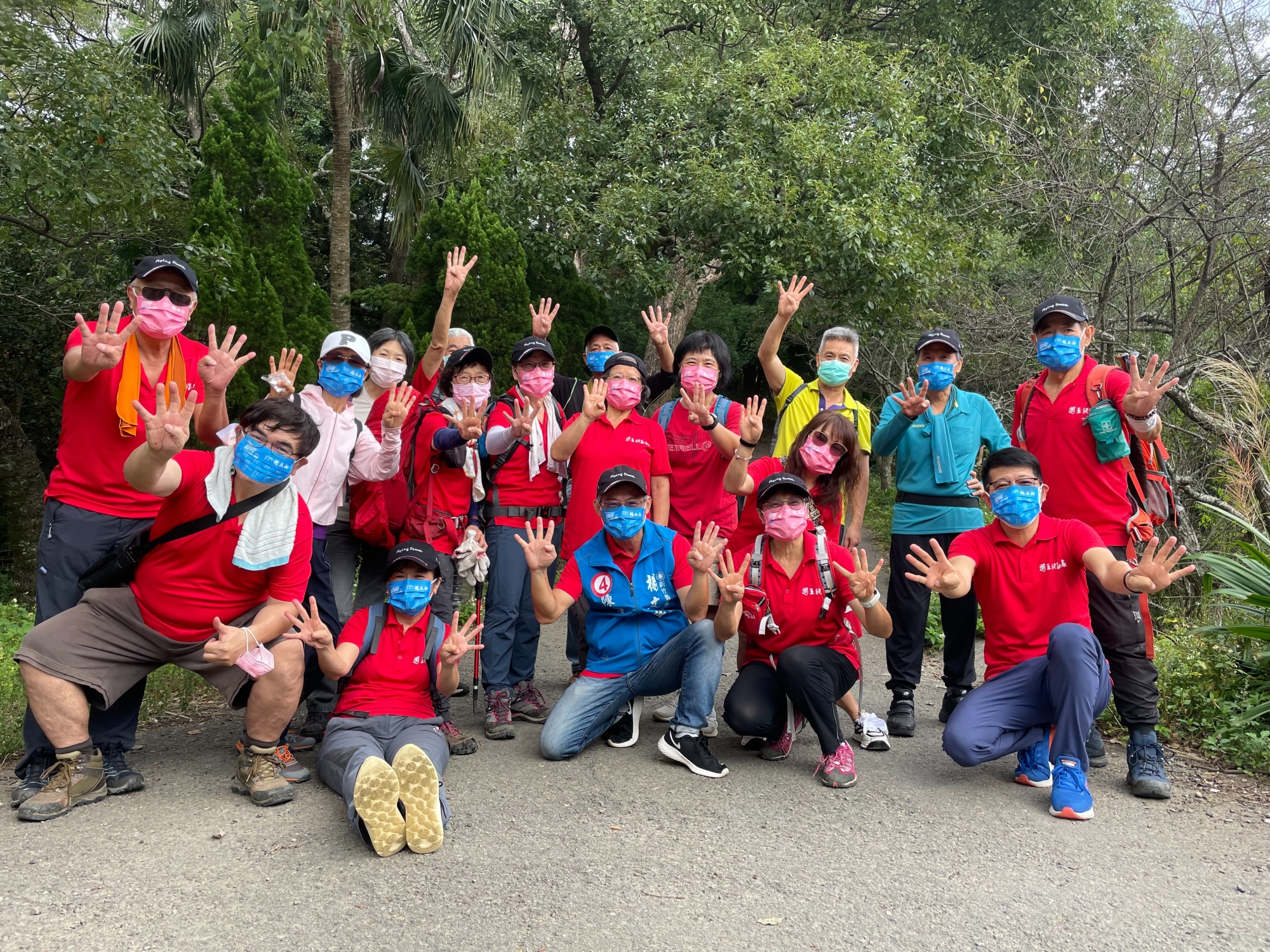 新竹週五爬趴隊」成員在飛鳳山,戴楊文科宣傳口罩力挺繼續連任。 何高祿攝