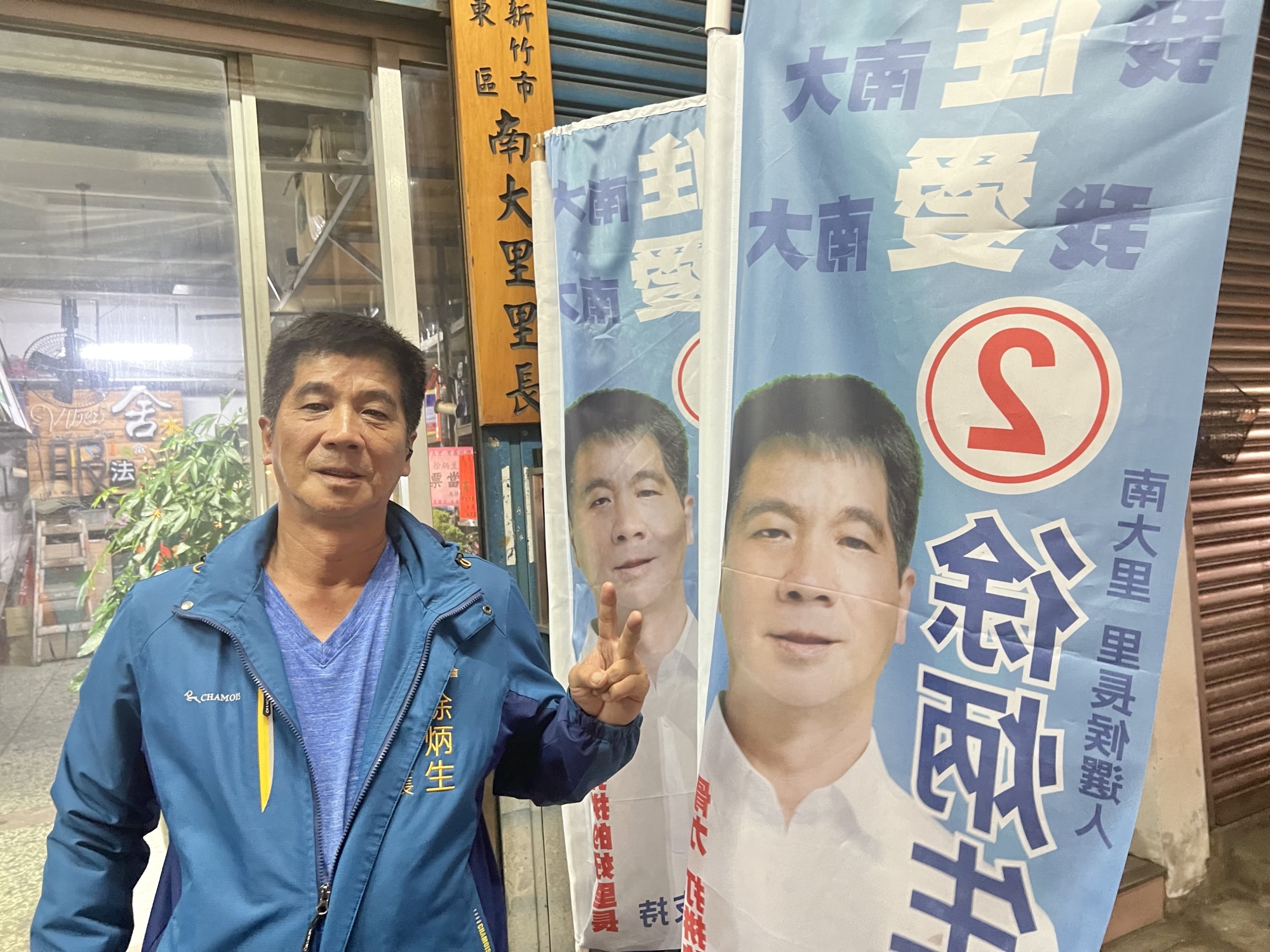 新竹市南大里2號里長候選人徐炳生競選總部成立,來自各地親朋好友祝福高票連任,他突然跪下讓九十來歲的媽媽披競選彩帶,剎那間現場鴉雀無聲。